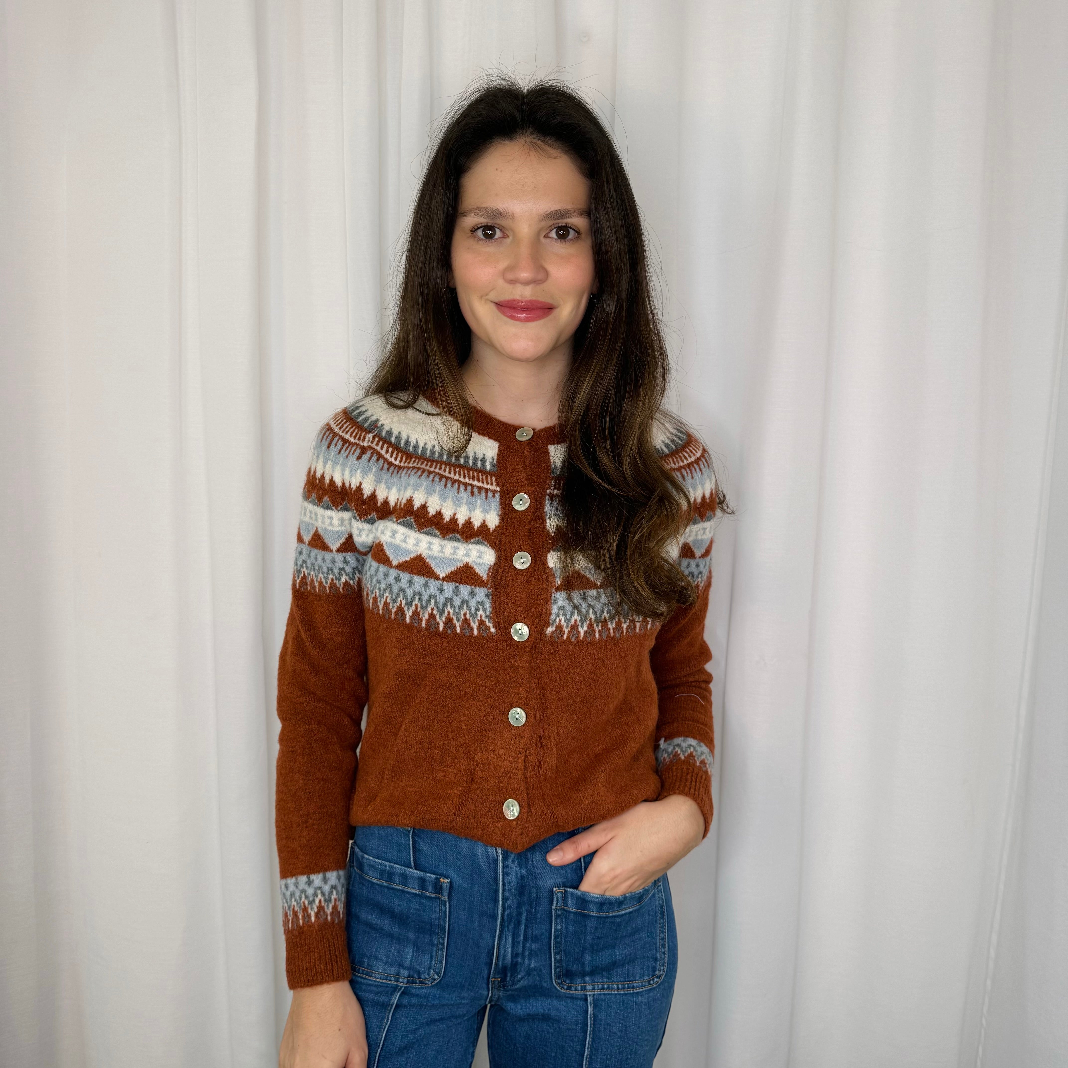 CARDIGAN CANELADO CASTANHO
