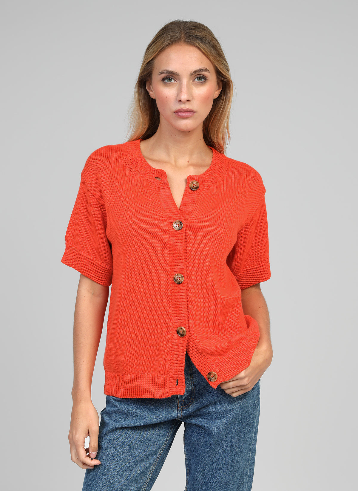 CARDIGAN ALGODÃO CORAL