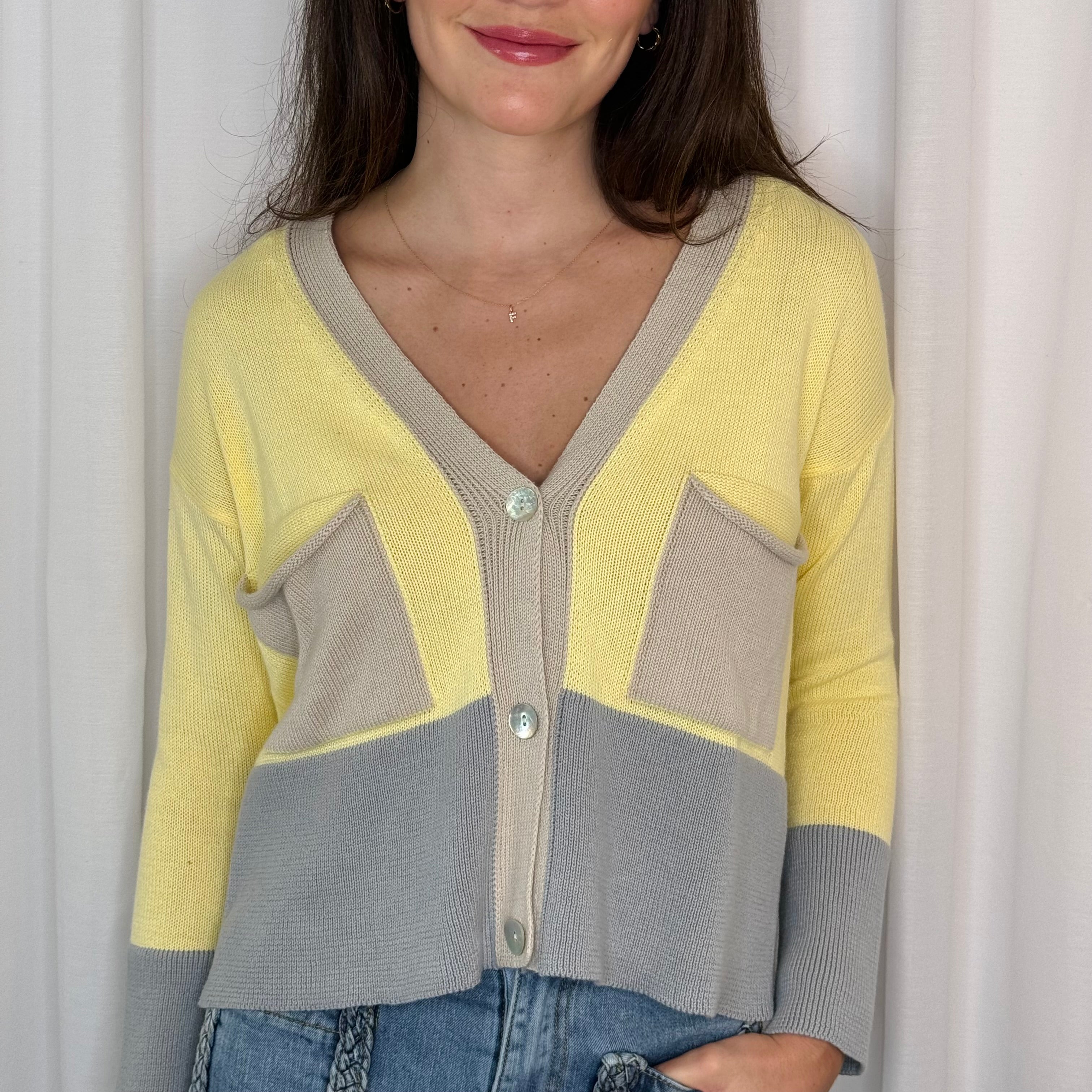 CARDIGAN AMARELO E AZUL