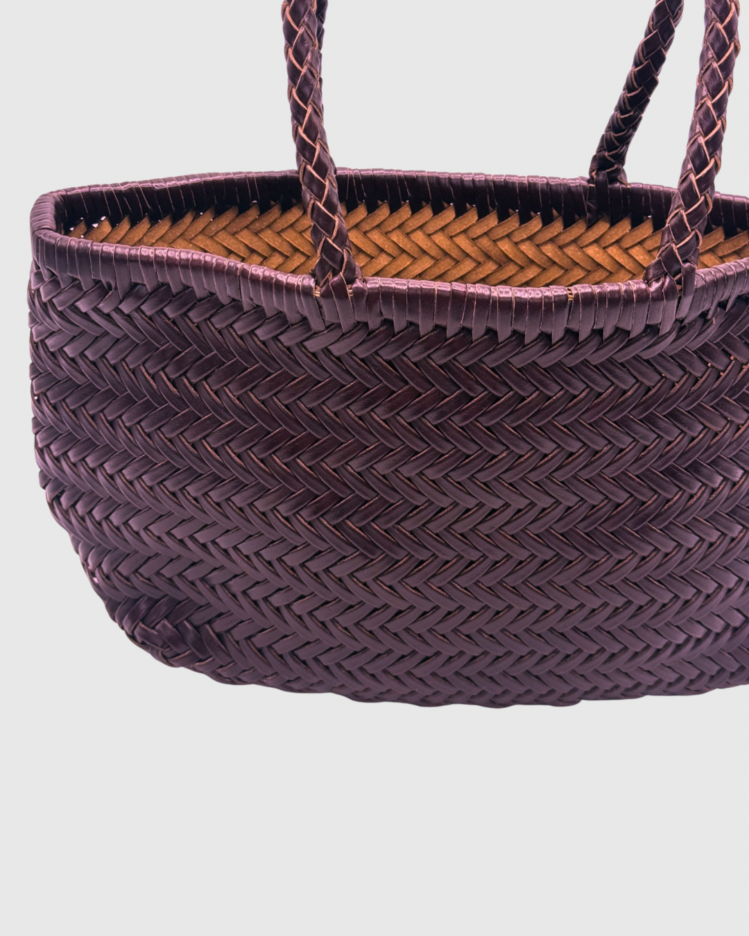 Carteira entrançada 100% pele. Alças curtas. Inclui bolsa forro e alça comprida.