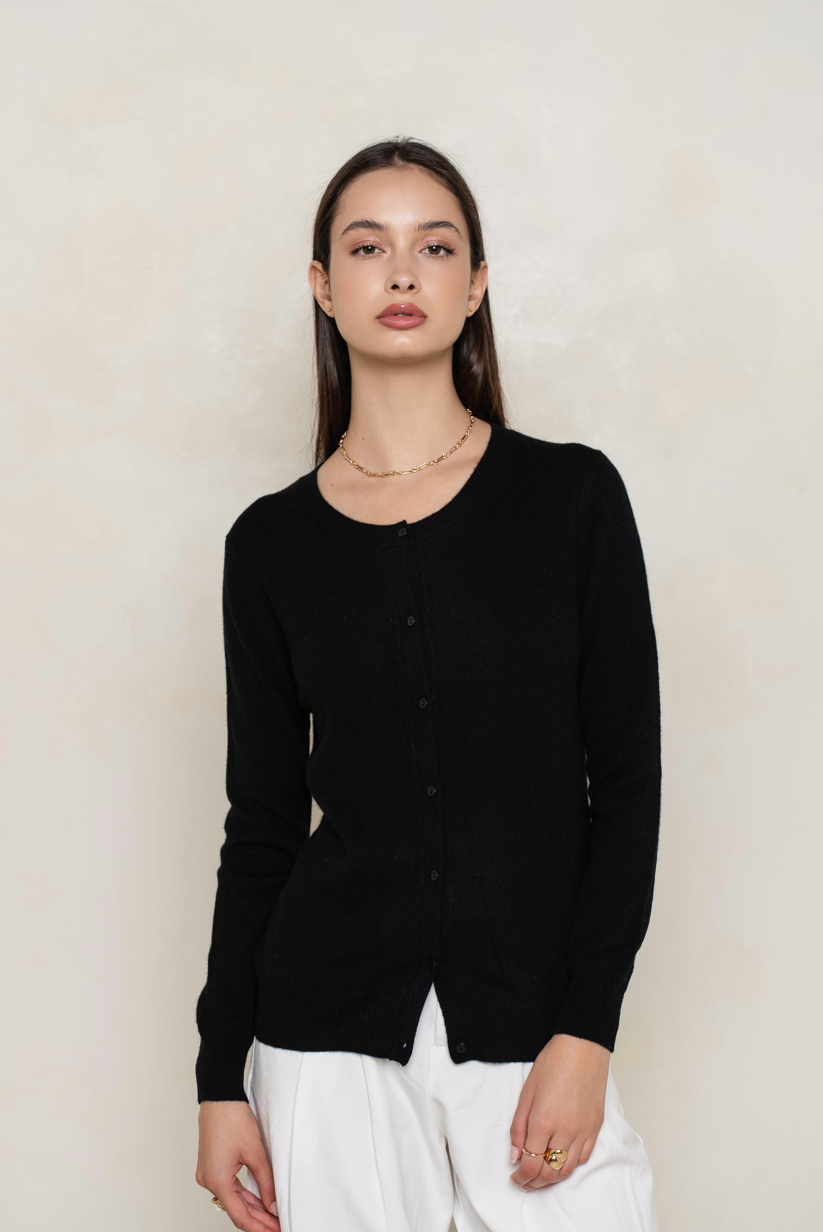 Cardigan confecionado em tecido 100% Cashmere. Decote redondo. Manga comprida. Fecho por botões. Acabamentos em nervuras .