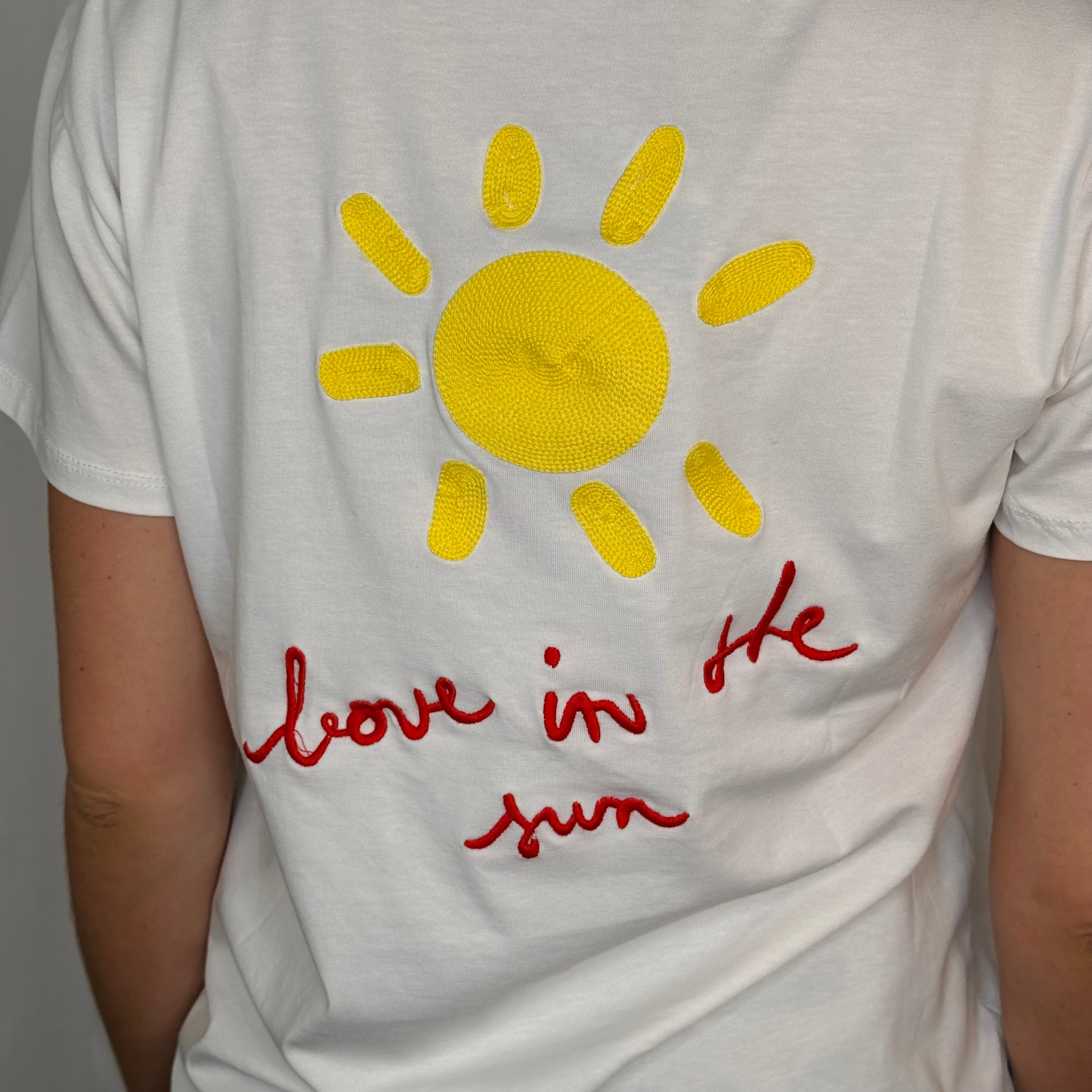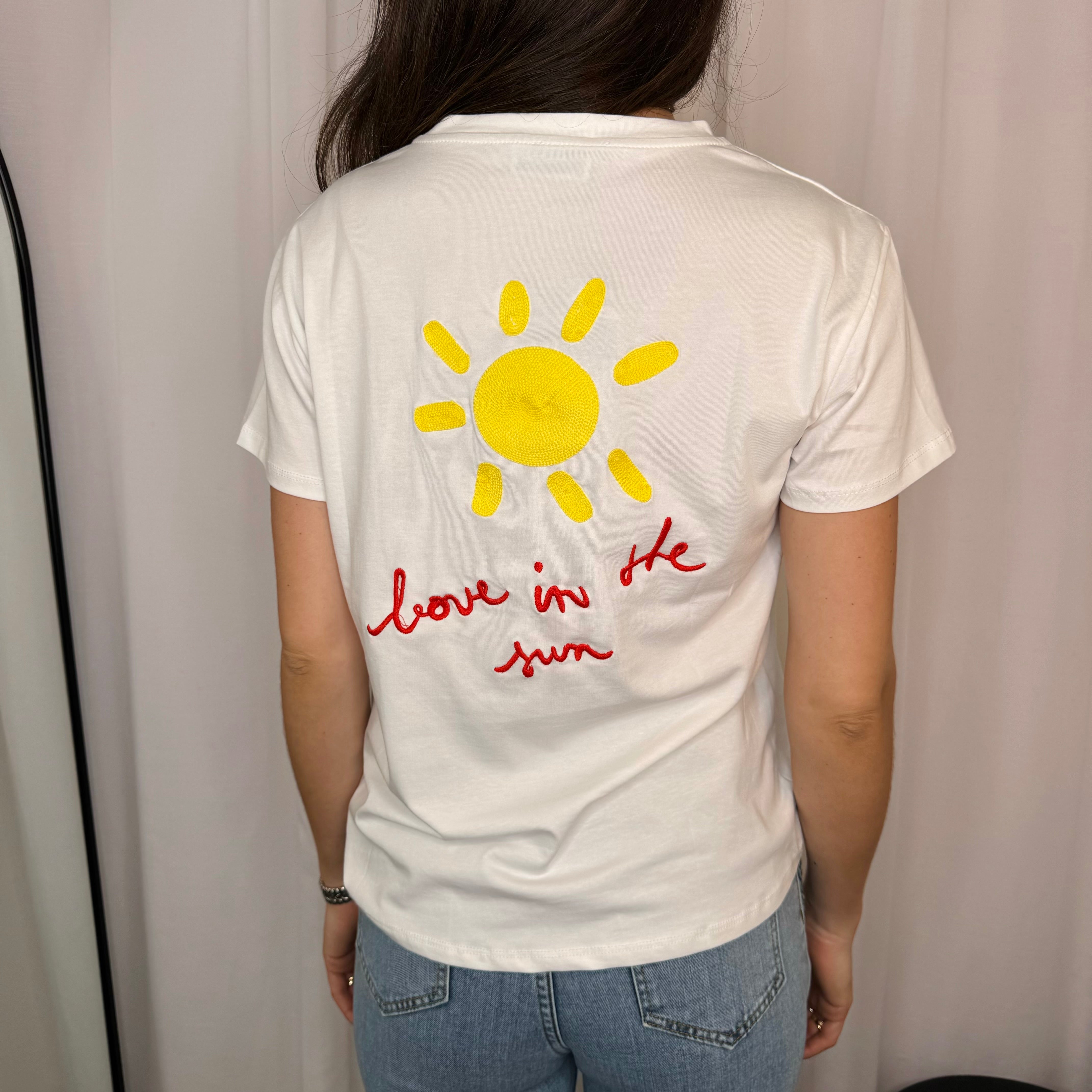 T-SHIRT BRANCA SOL BORDADO