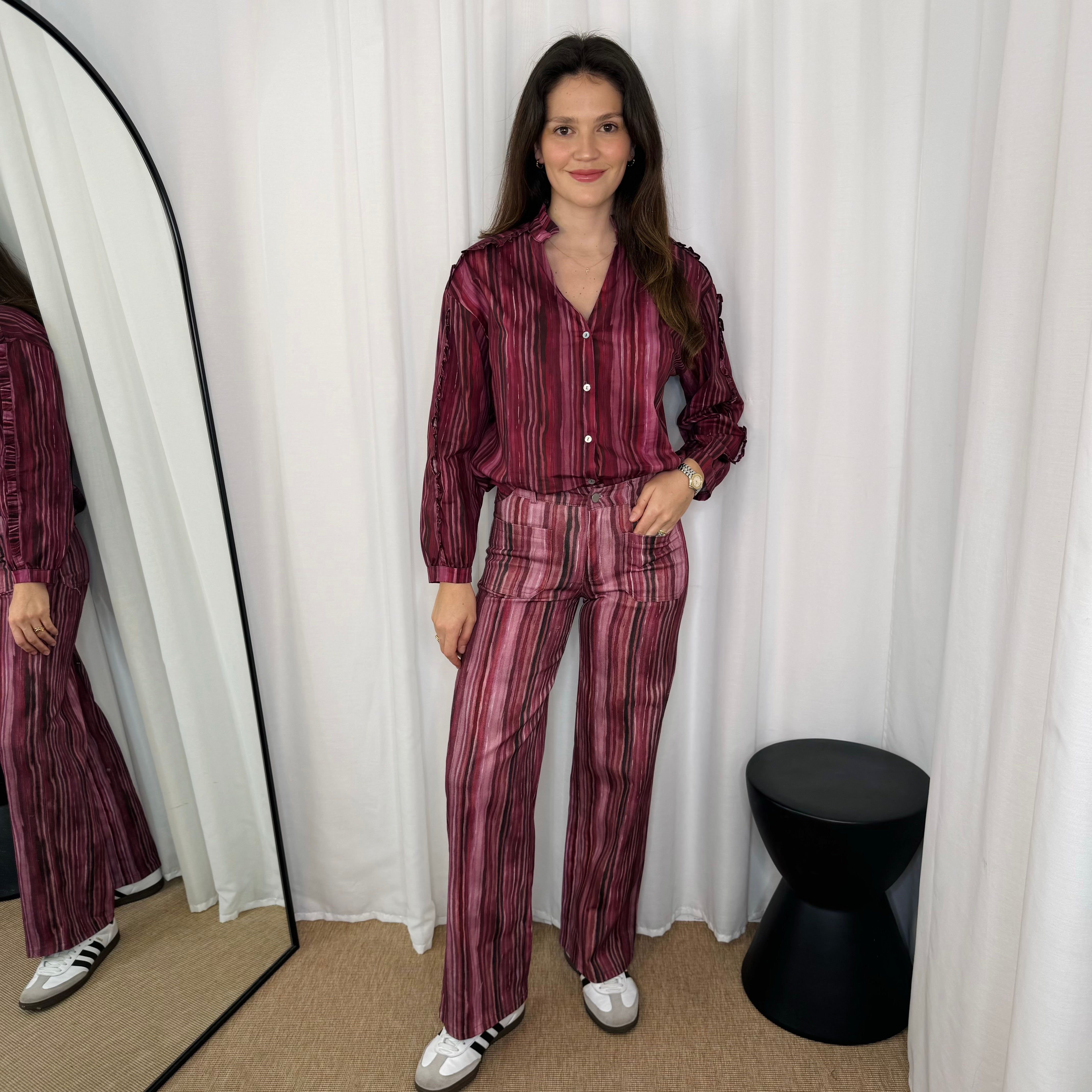 Camisa gola-padre. Folho nas mangas. Aperta com botões ao centro.