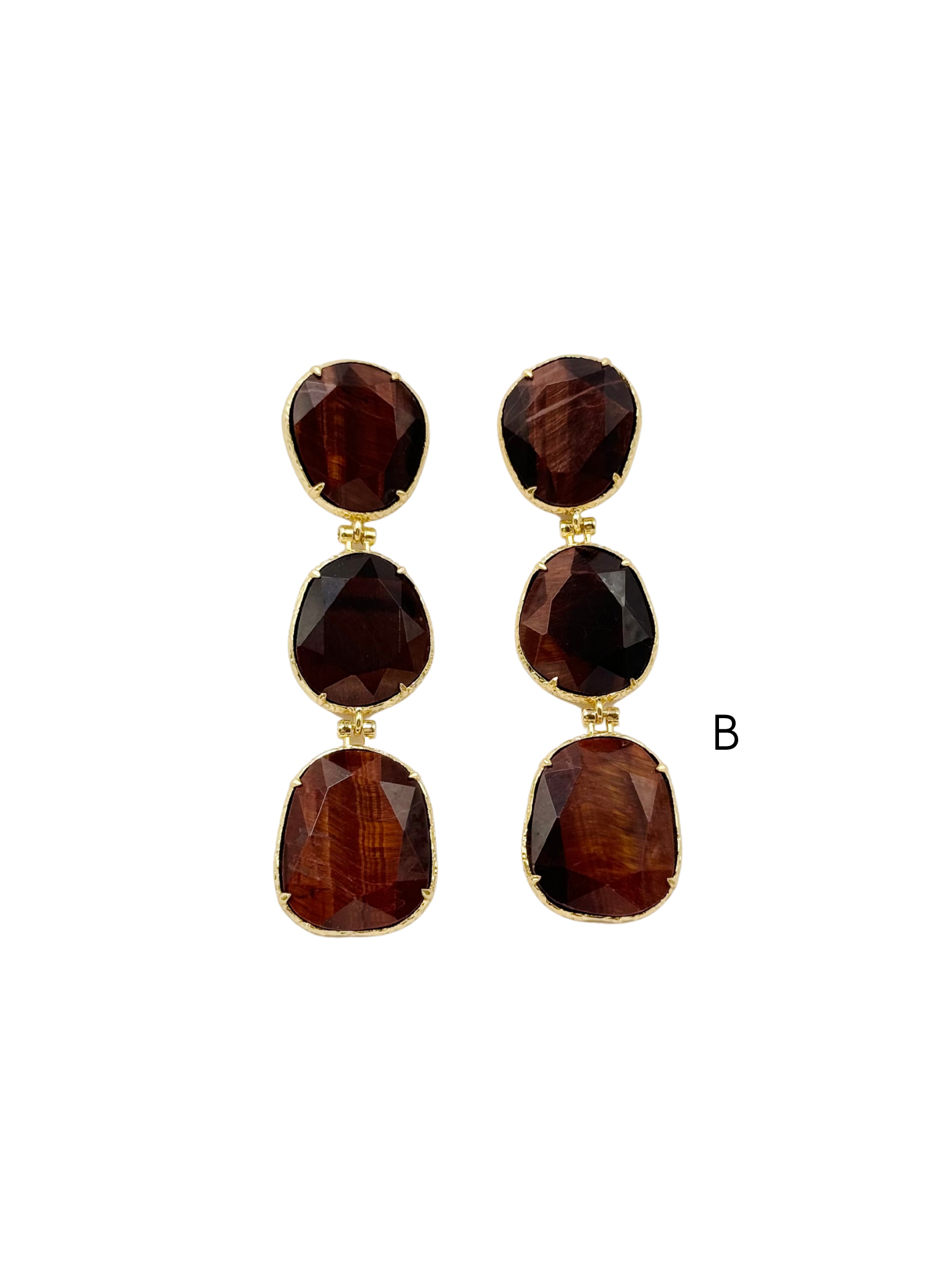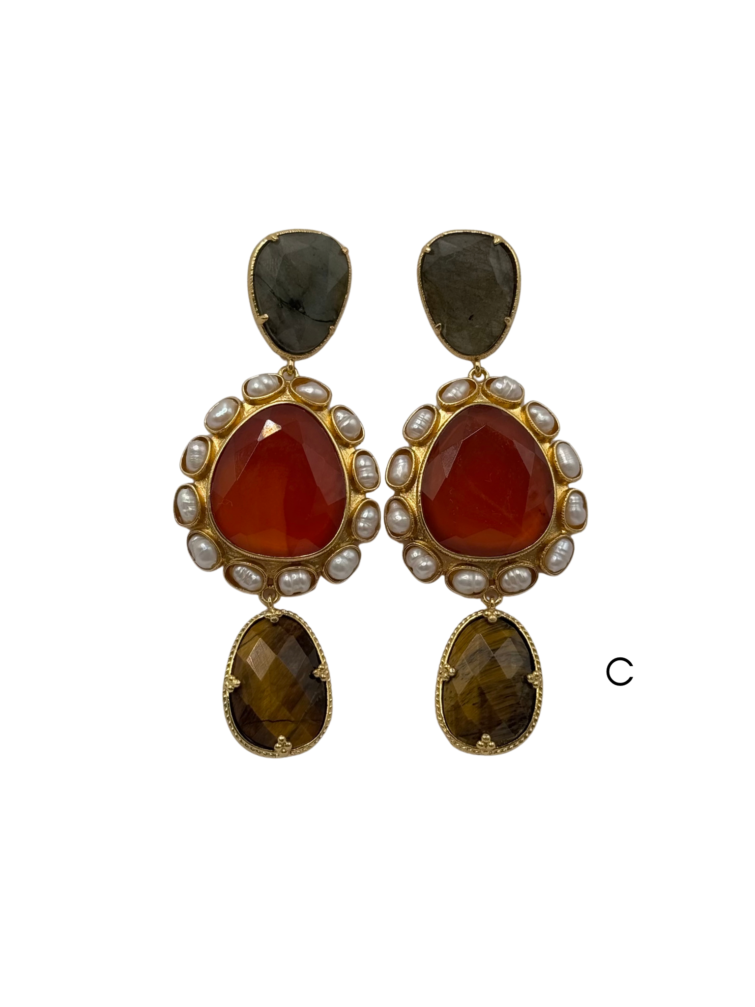 Brincos em aço inoxidável. Pedras naturais. Madre pérola.