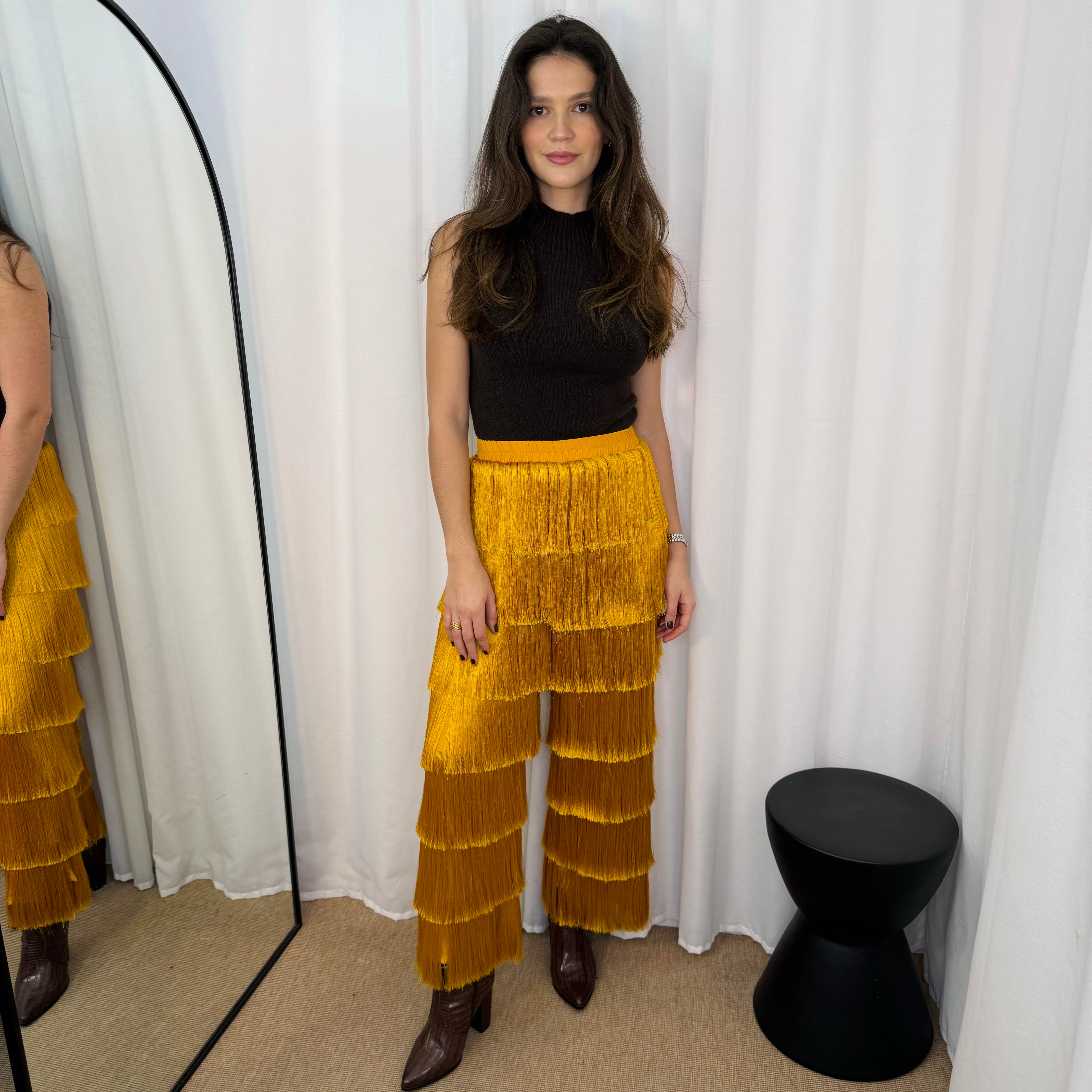 CALÇAS FRANJAS MOSTARDA