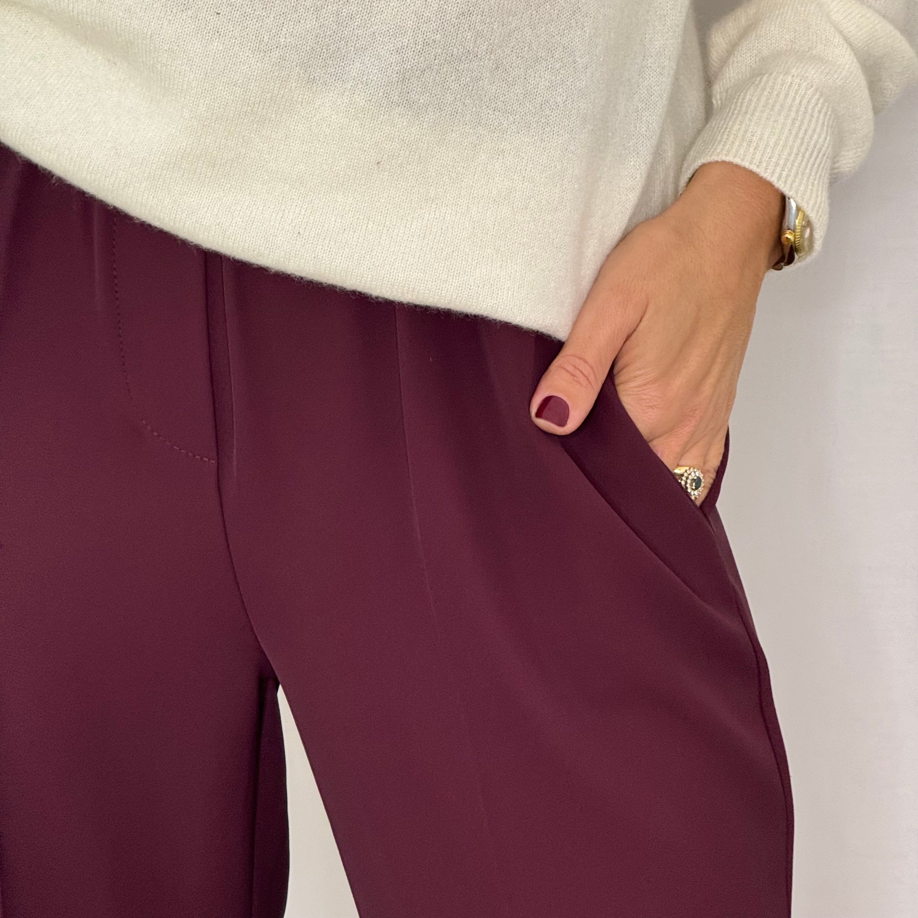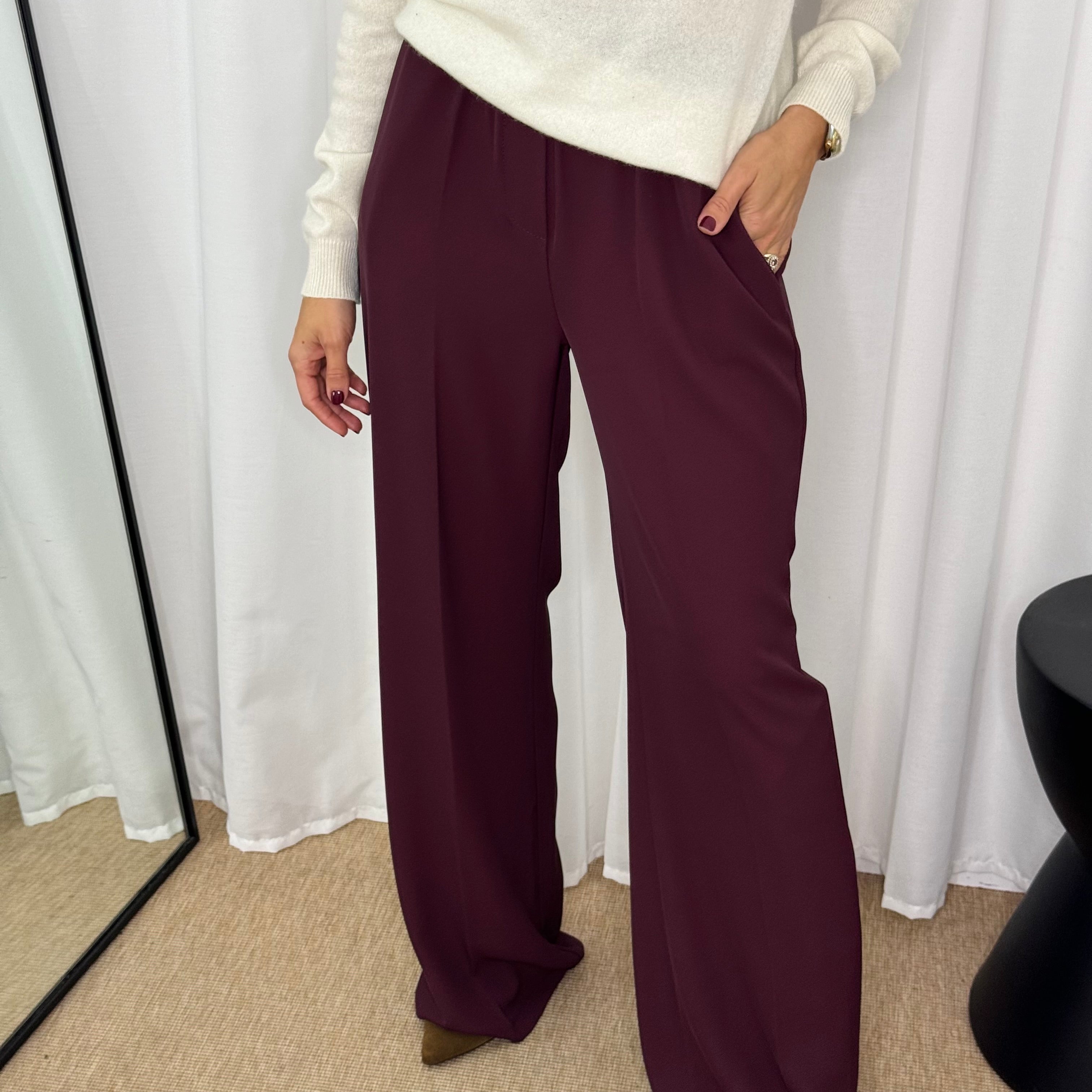Calças modelo a direito. Perna larga. Tecido fino e confortável. Elástico na cintura. Bolsos laterais.
