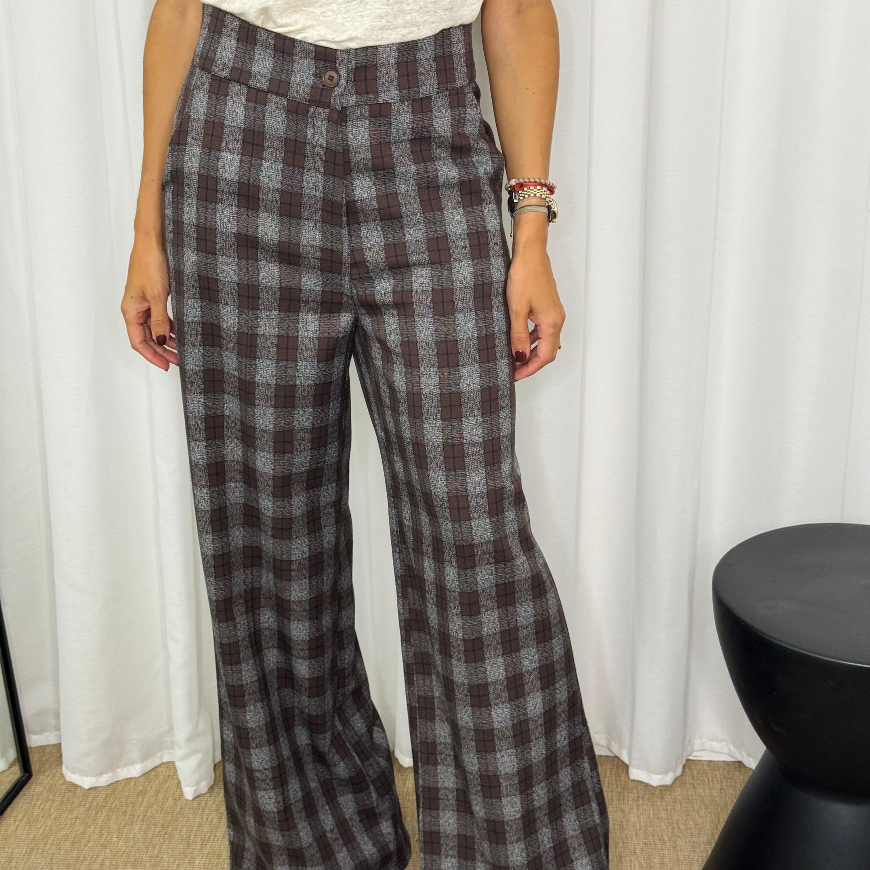 CALÇAS ESCOCÊS CASTANHO E CINZA
