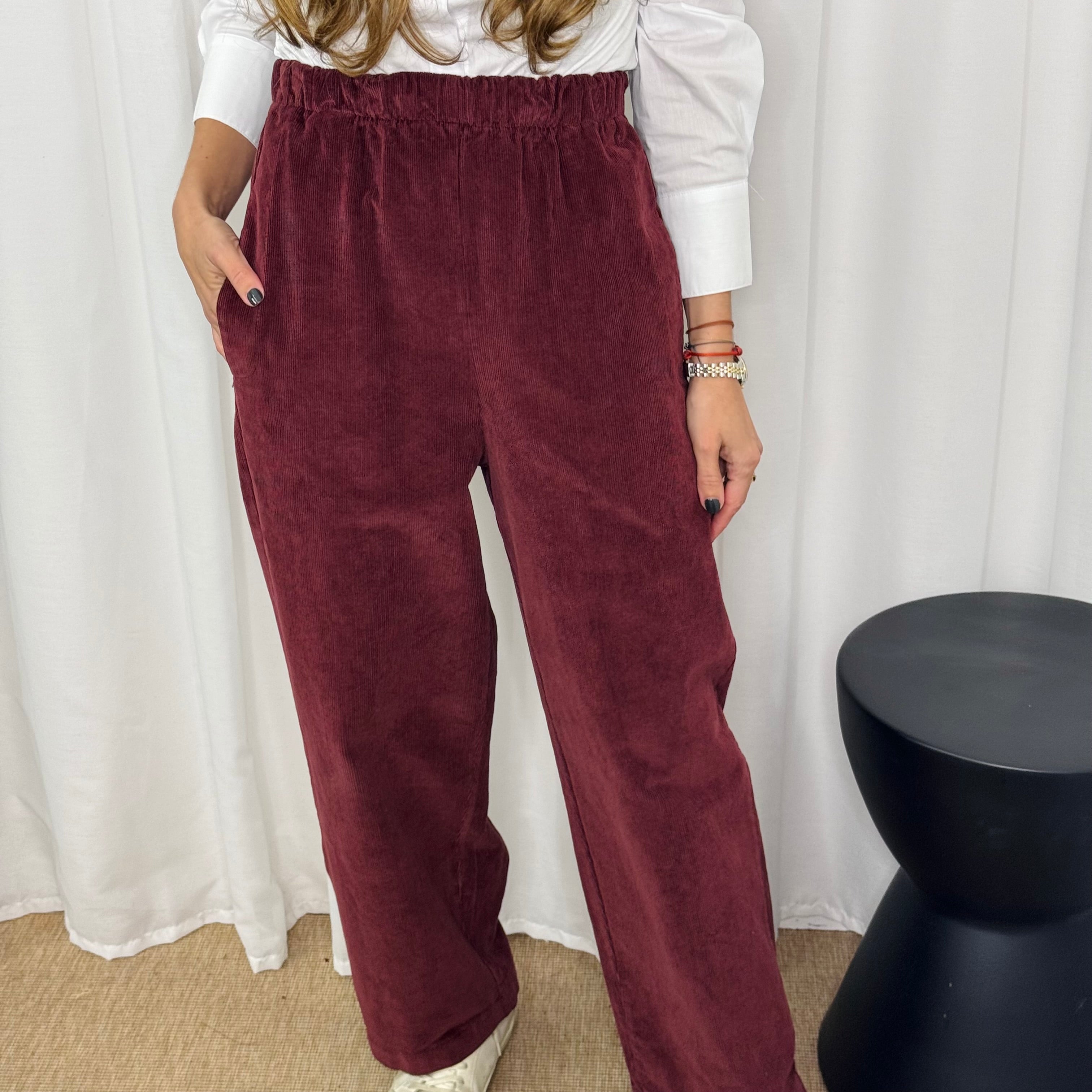 CALÇAS BAGGY BOMBAZINE BORDEAUX