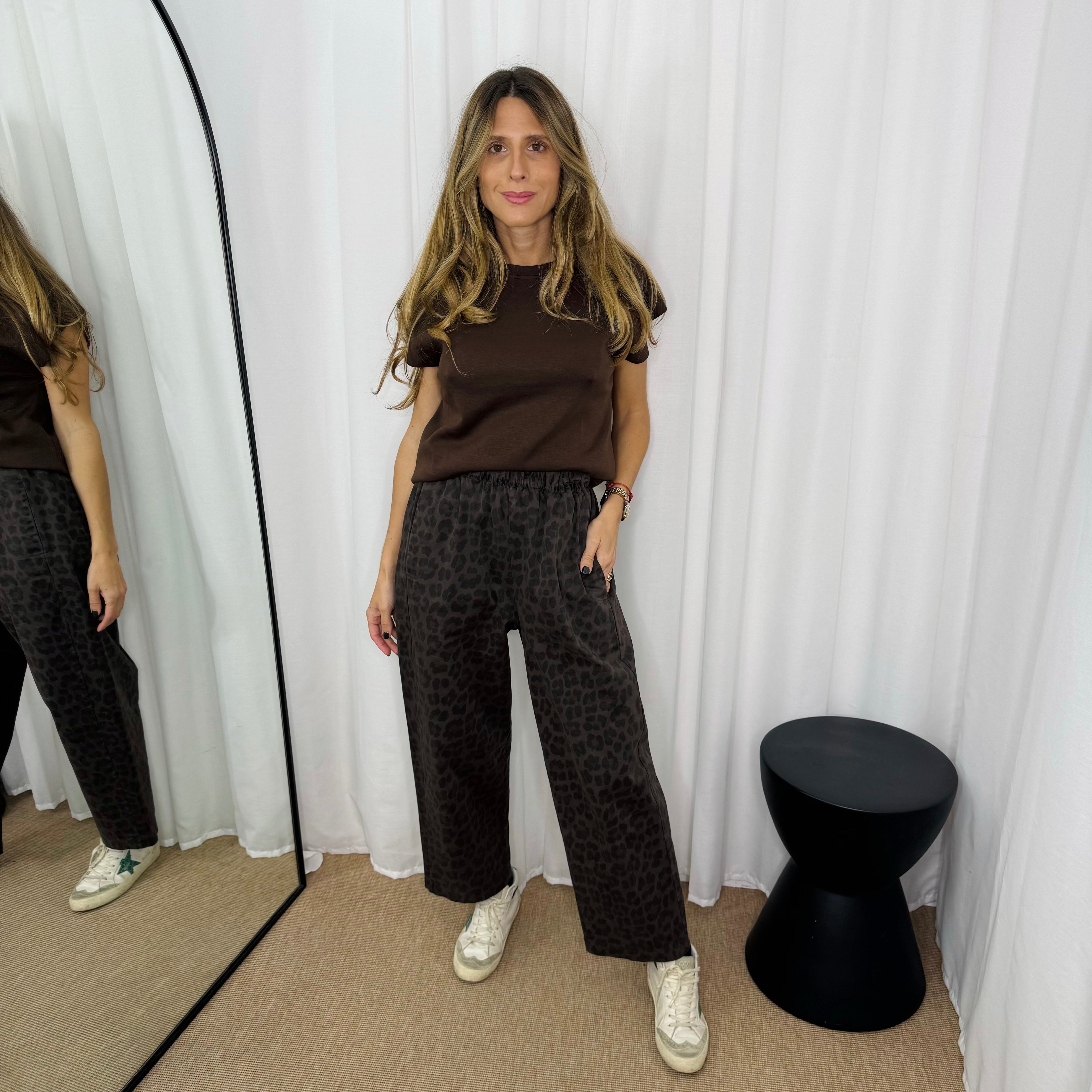 CALÇAS BAGGY ANIMAL PRINT CASTANHO
