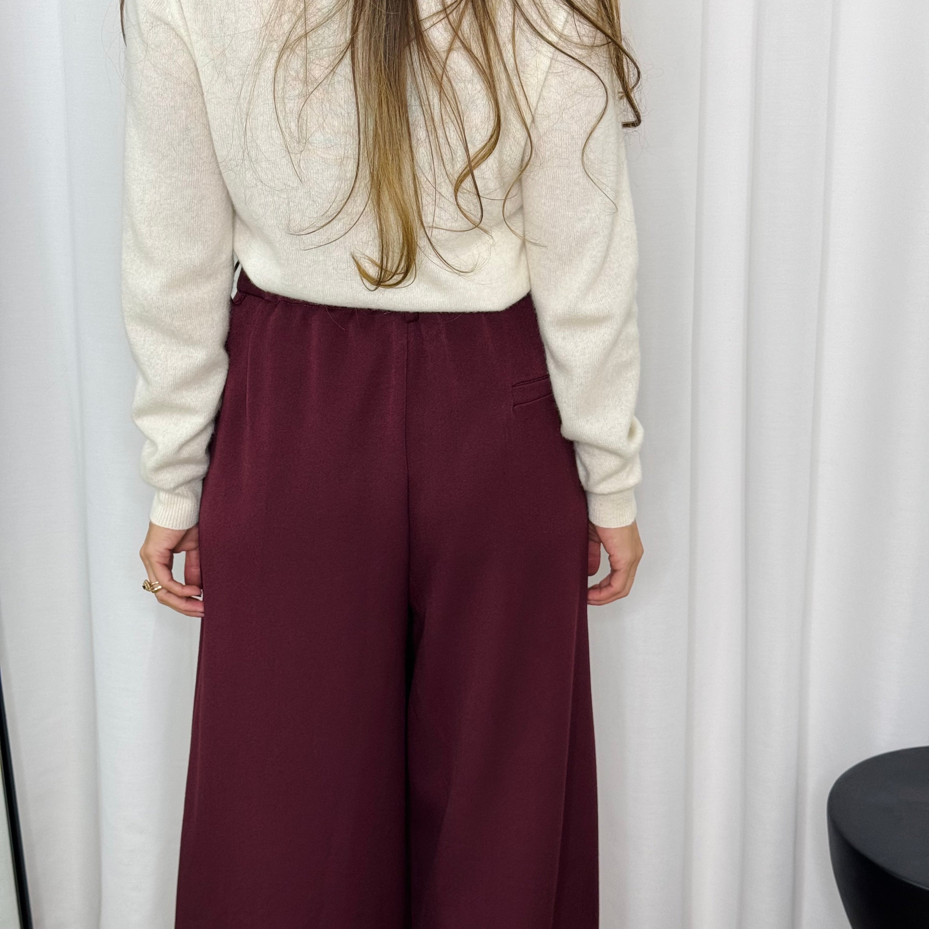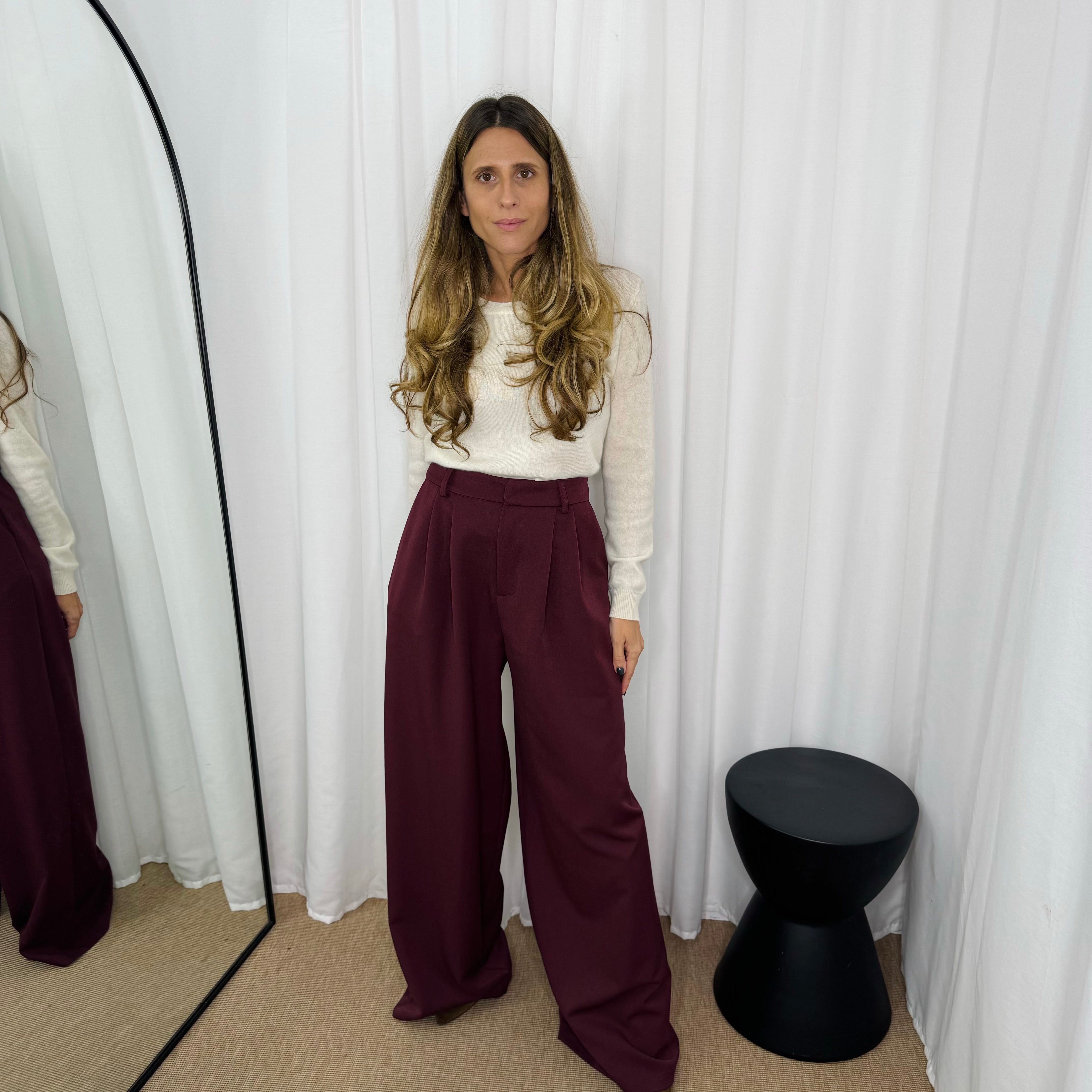 Calças modelo a direito com pregas. Bolsos laterais. Aperta com fecho e botão.