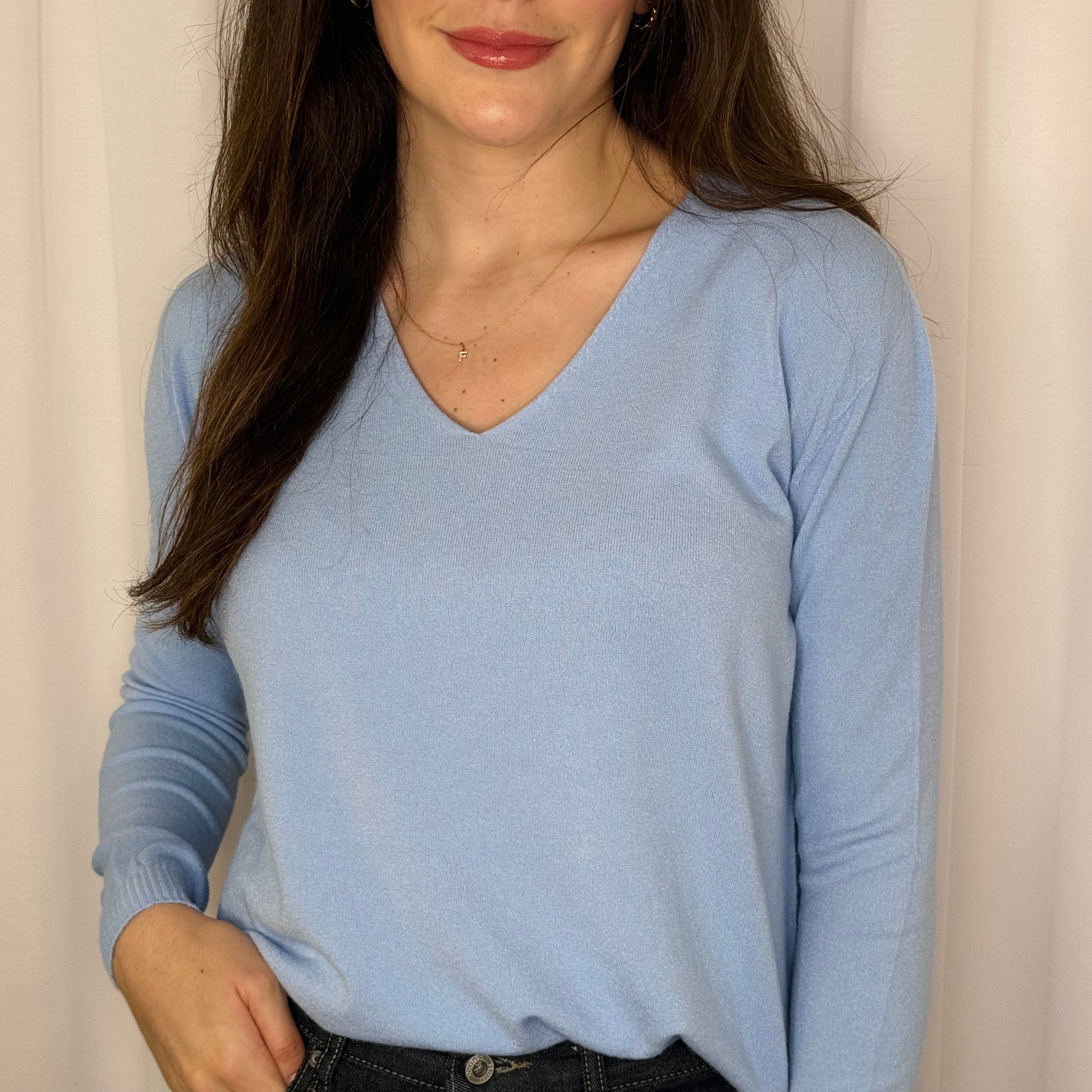 Camisola malha. Decote bico.