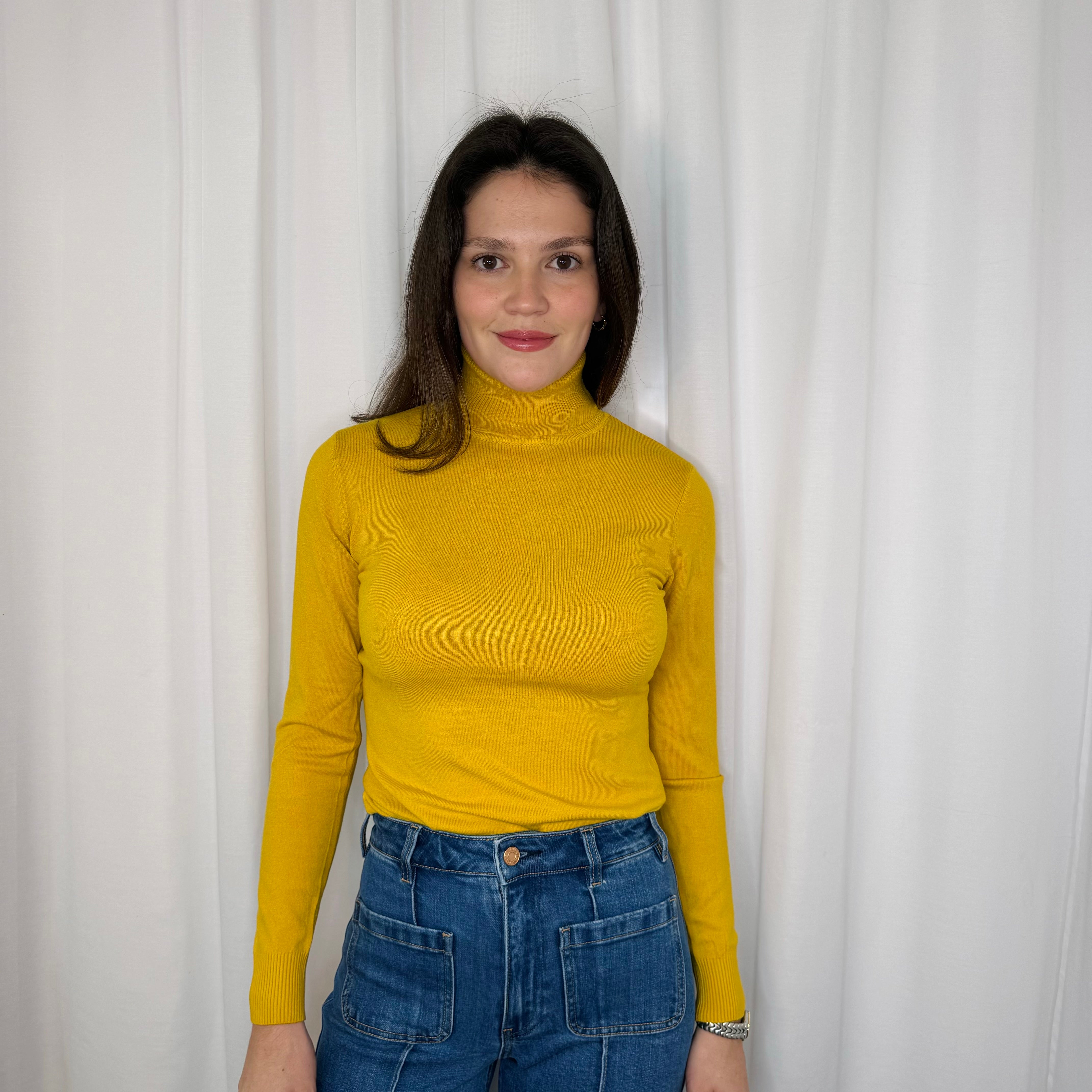 CAMISOLA MALHA GOLA ALTA MOSTARDA
