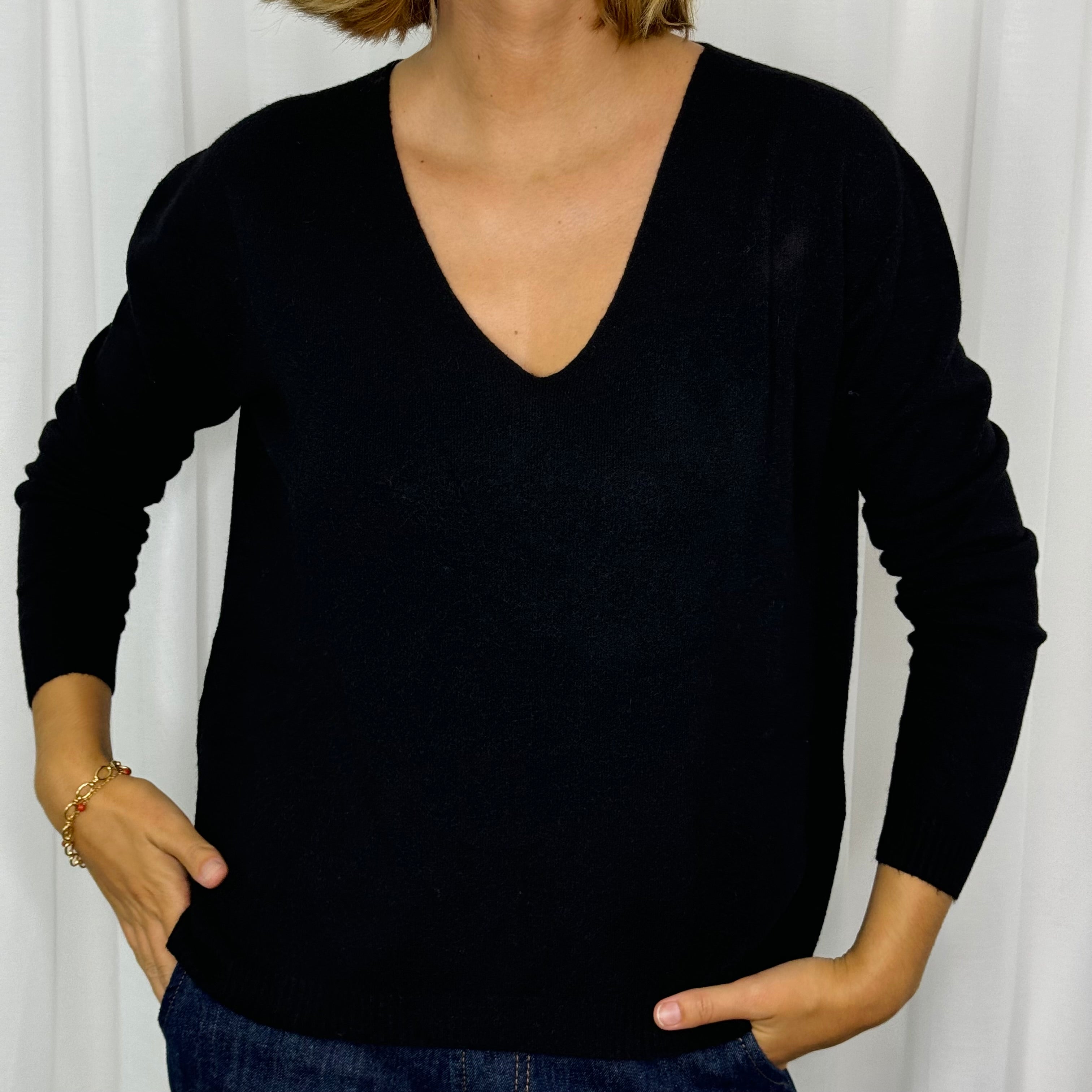 Camisola malha. Decote bico.