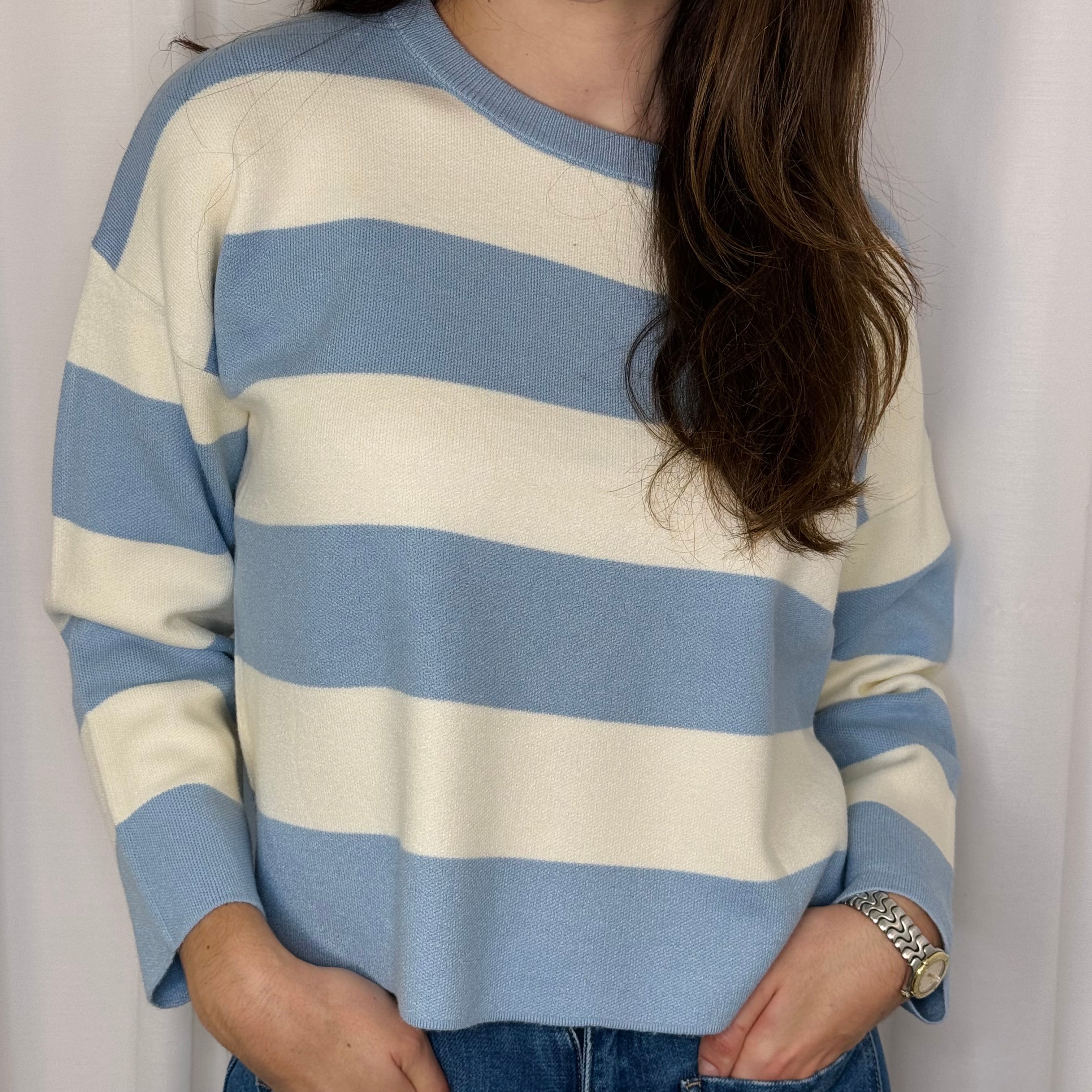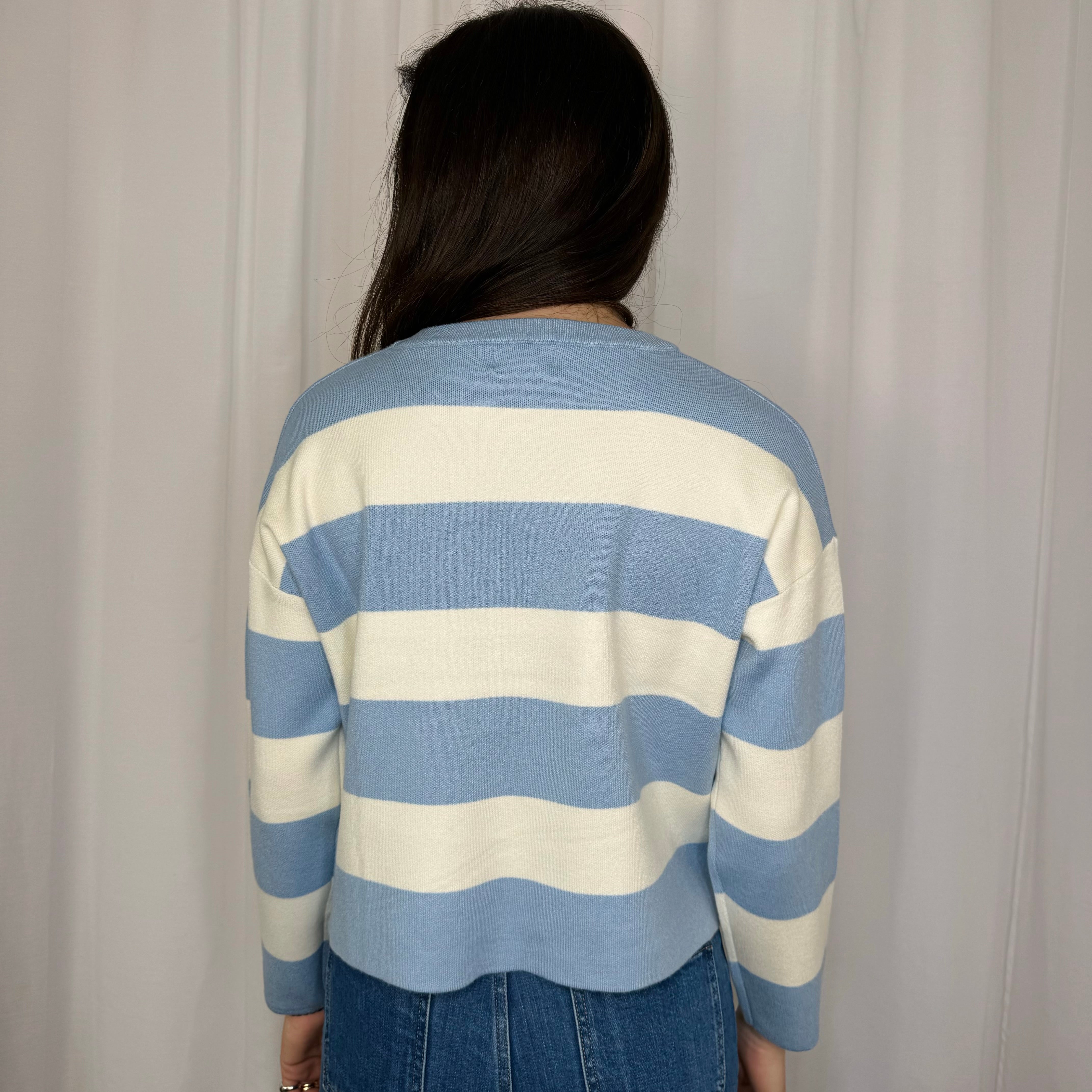 CAMISOLA MALHA RISCAS AZUL E BRANCO