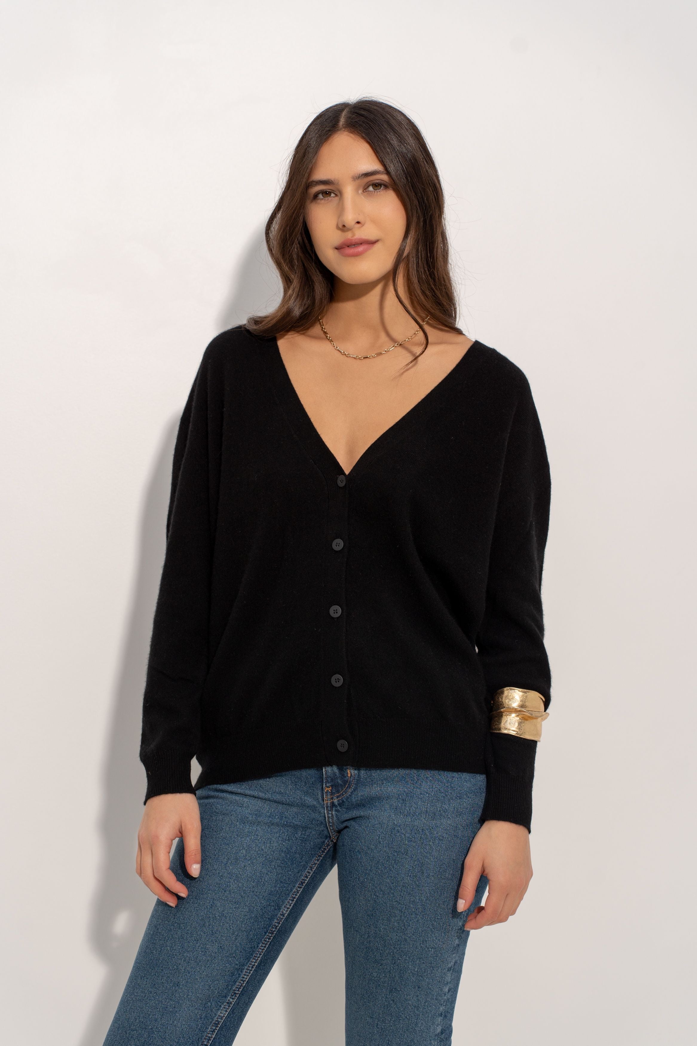 CARDIGAN 100% CASHMERE PRETO