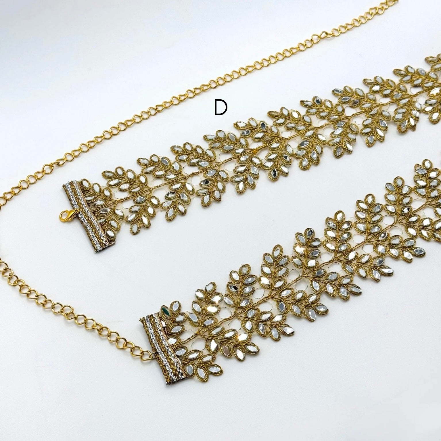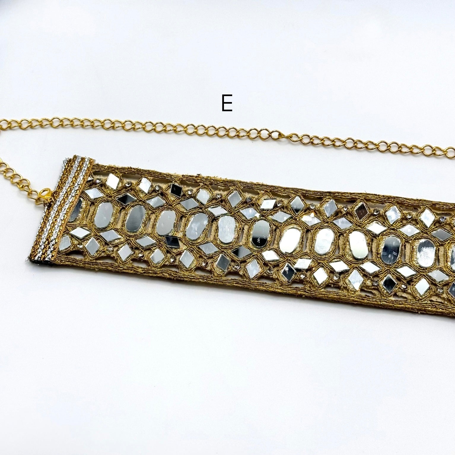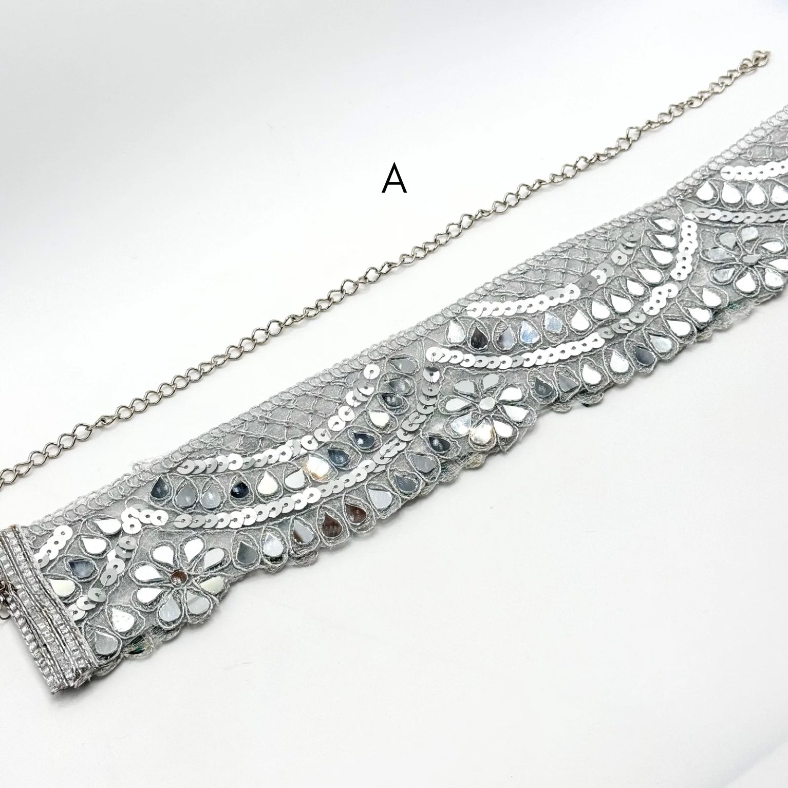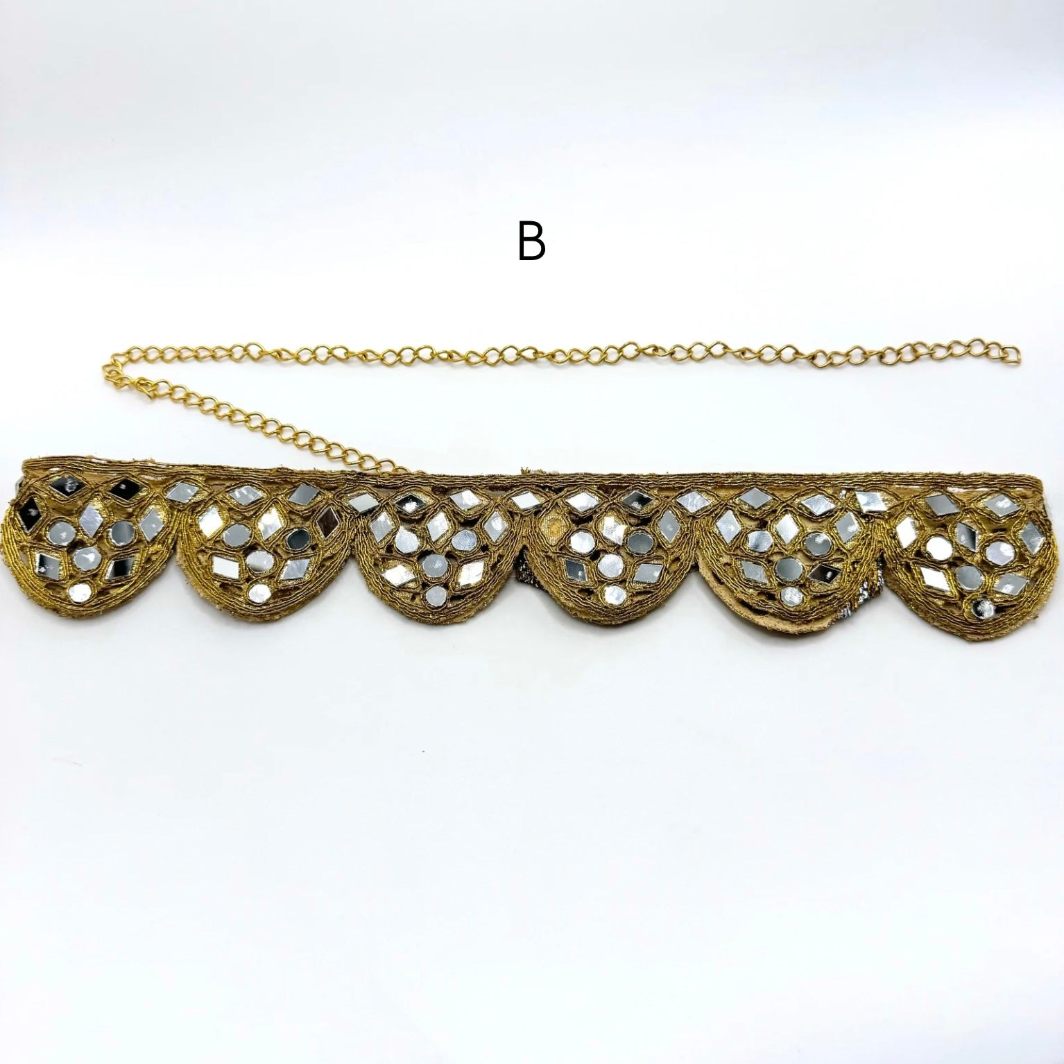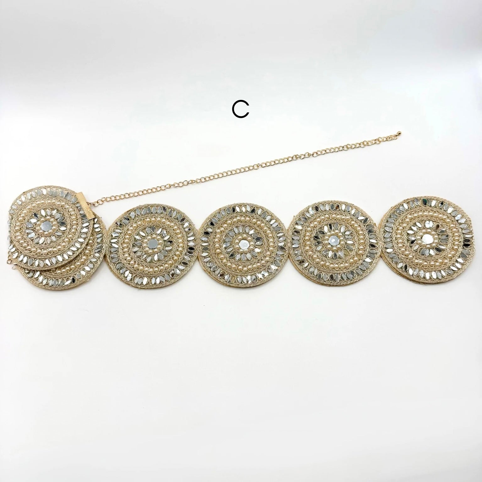 Cintos em rede com espelhos ou missangas. Aperta com com mosquetão, corrente ajustável. Feitos à mão.