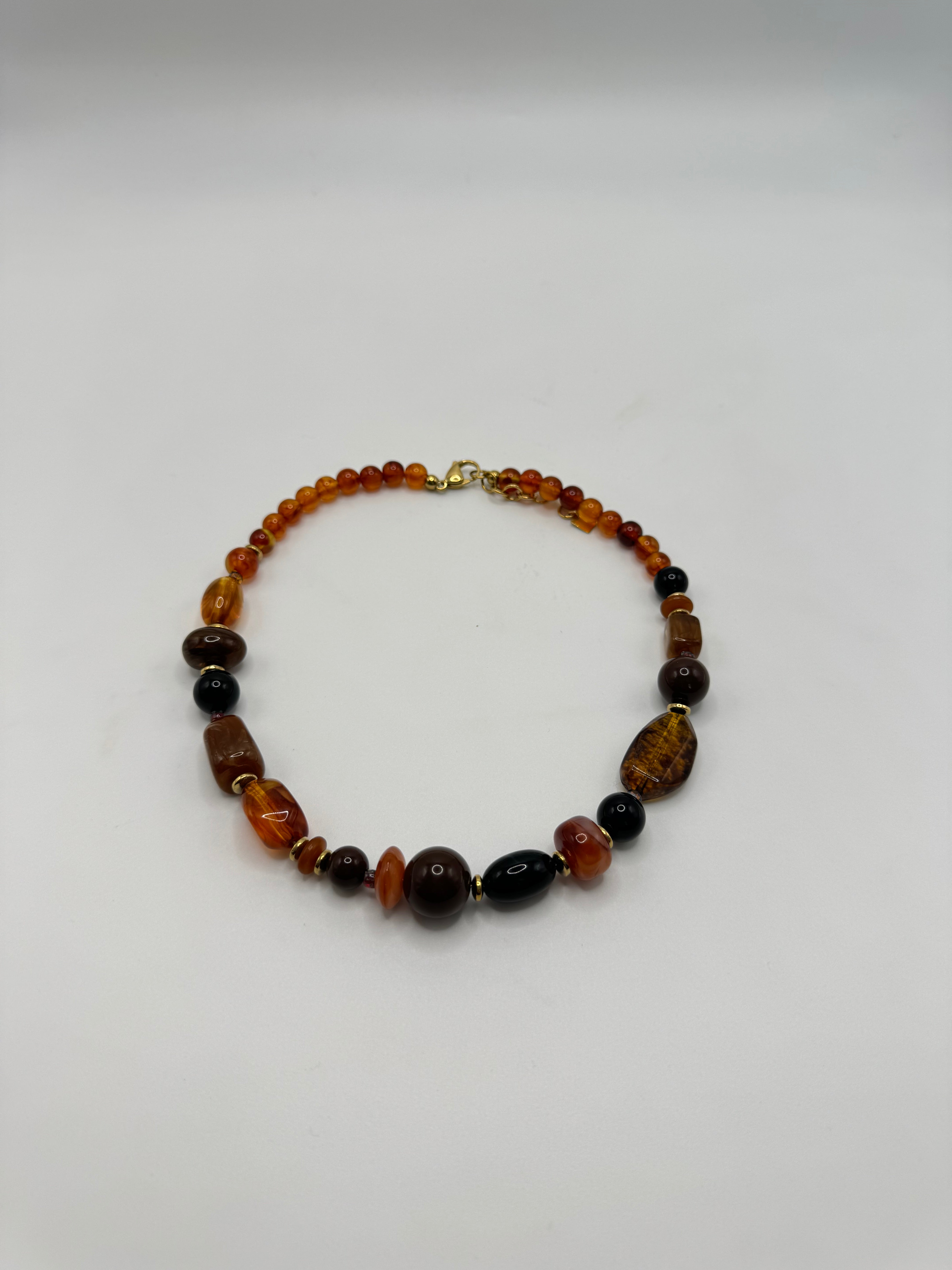Colar em aço inoxidável. Pedras em acrílico de diversos formatos e cores.
