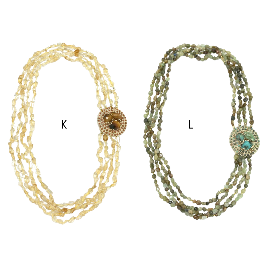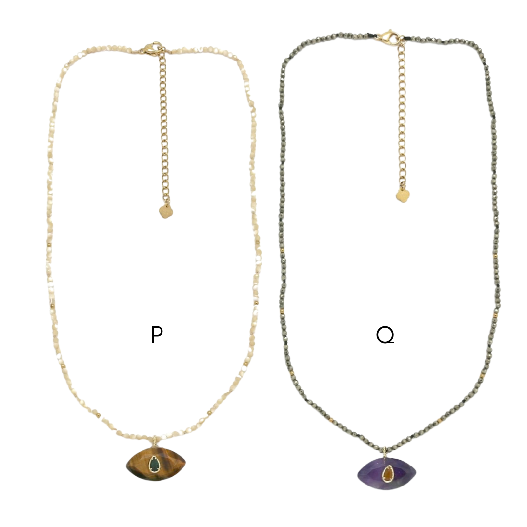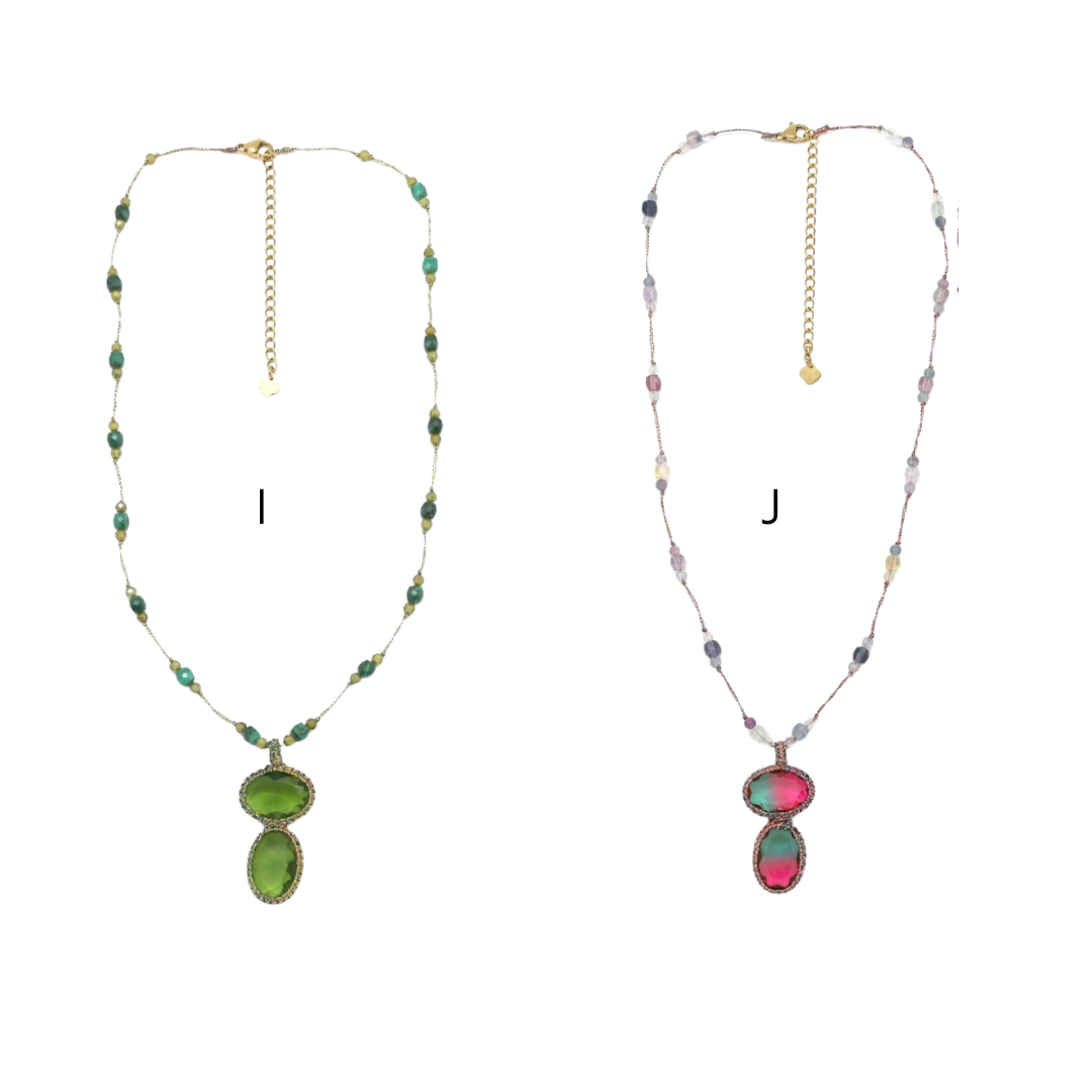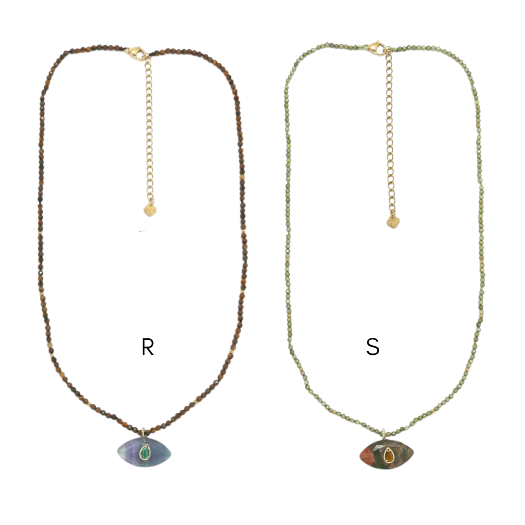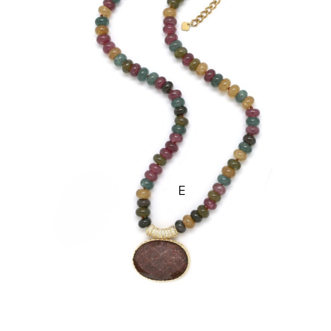 Colares em aço inoxidável e em pedras naturais.