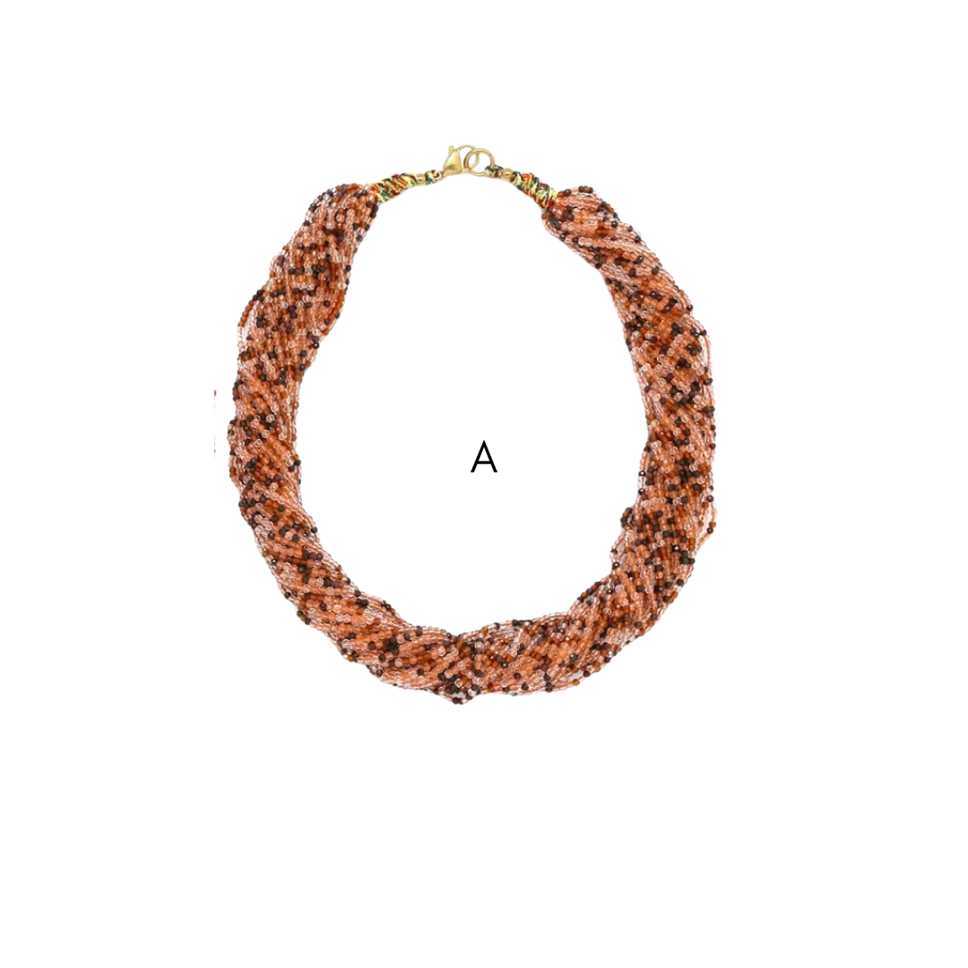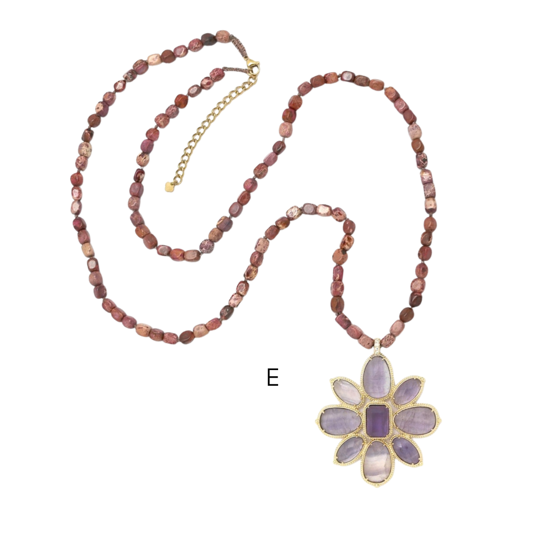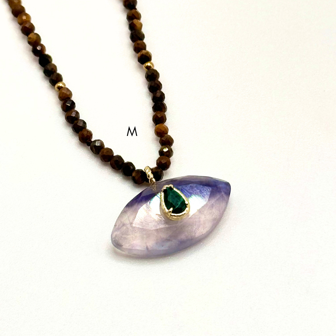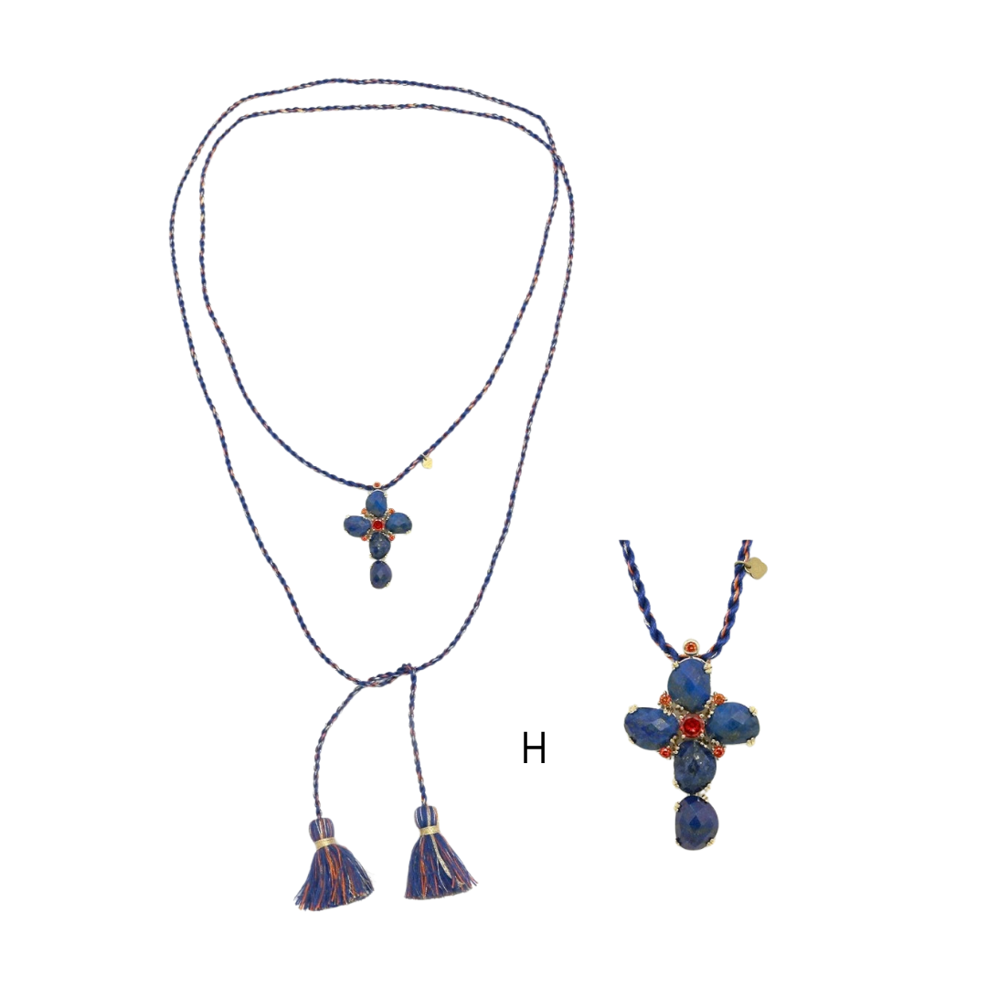 Colares em aço inoxidável e em pedras naturais.