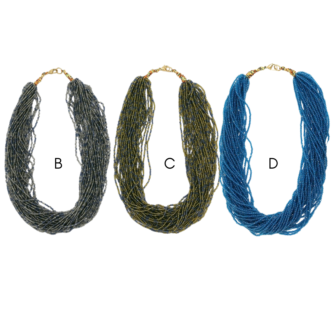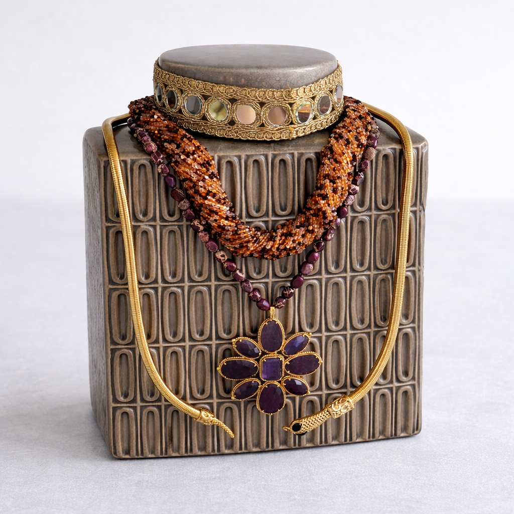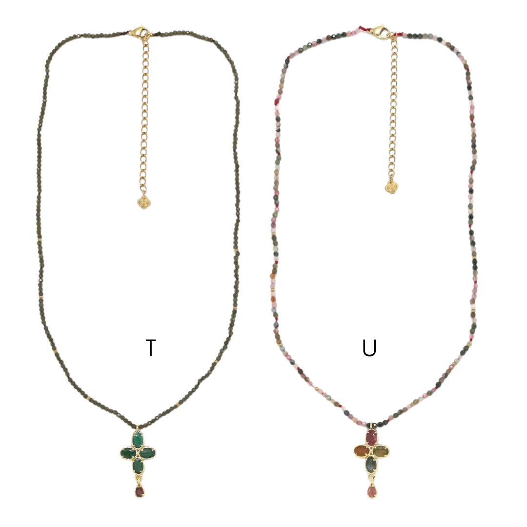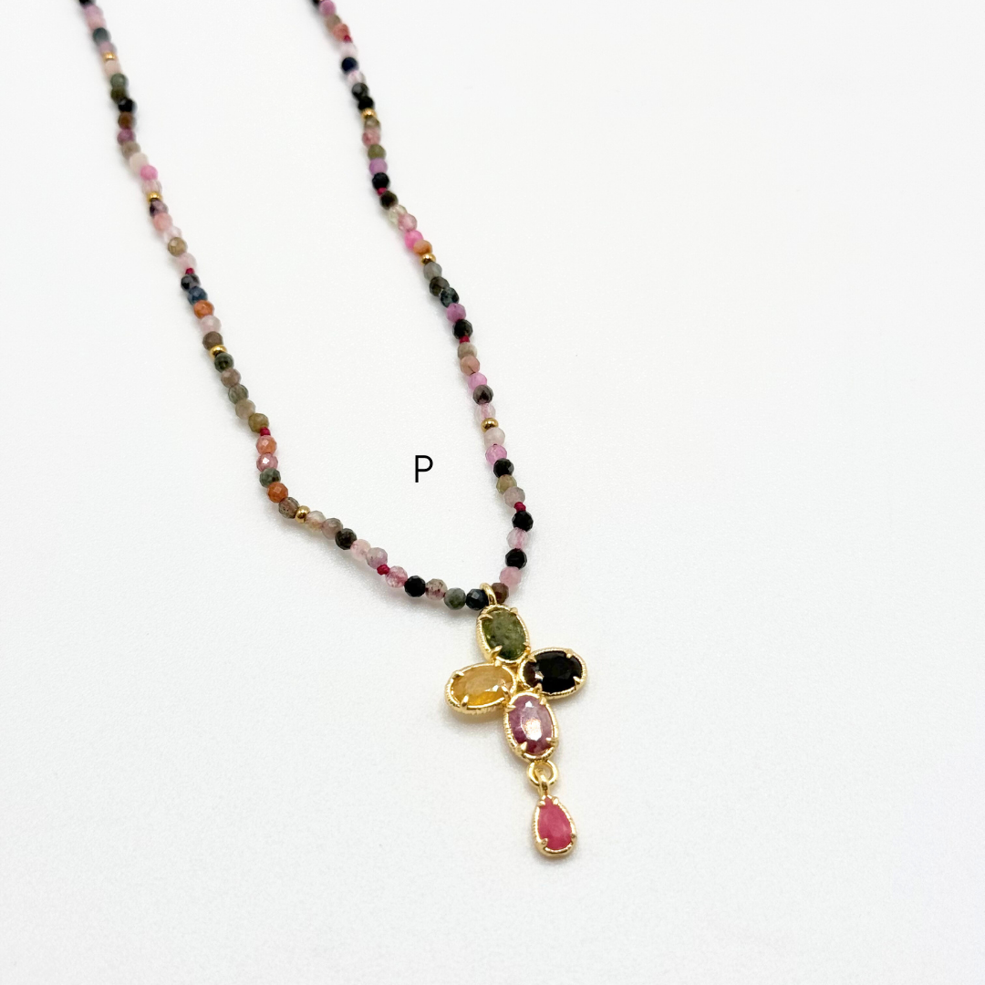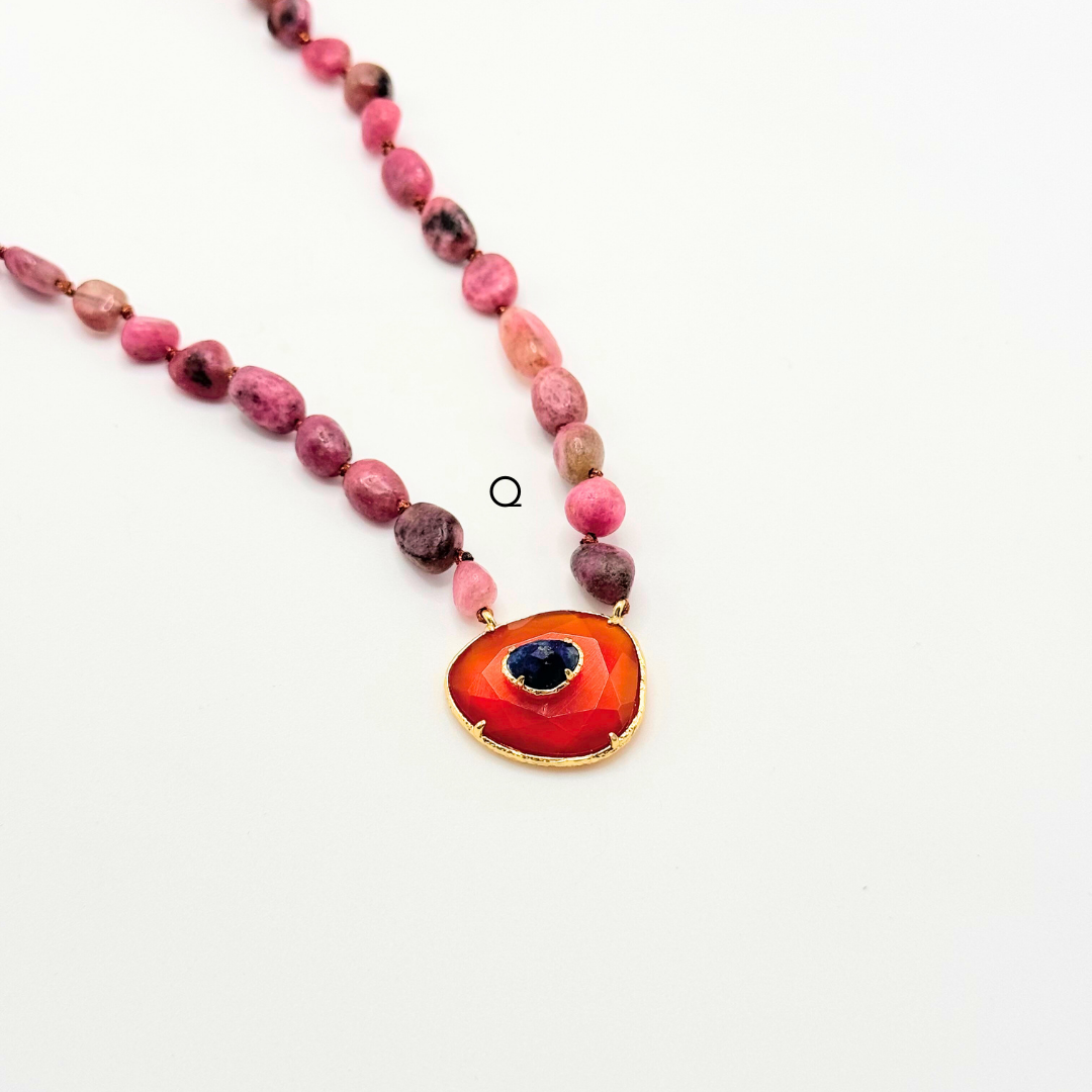 Colares em aço inoxidável e em pedras naturais.