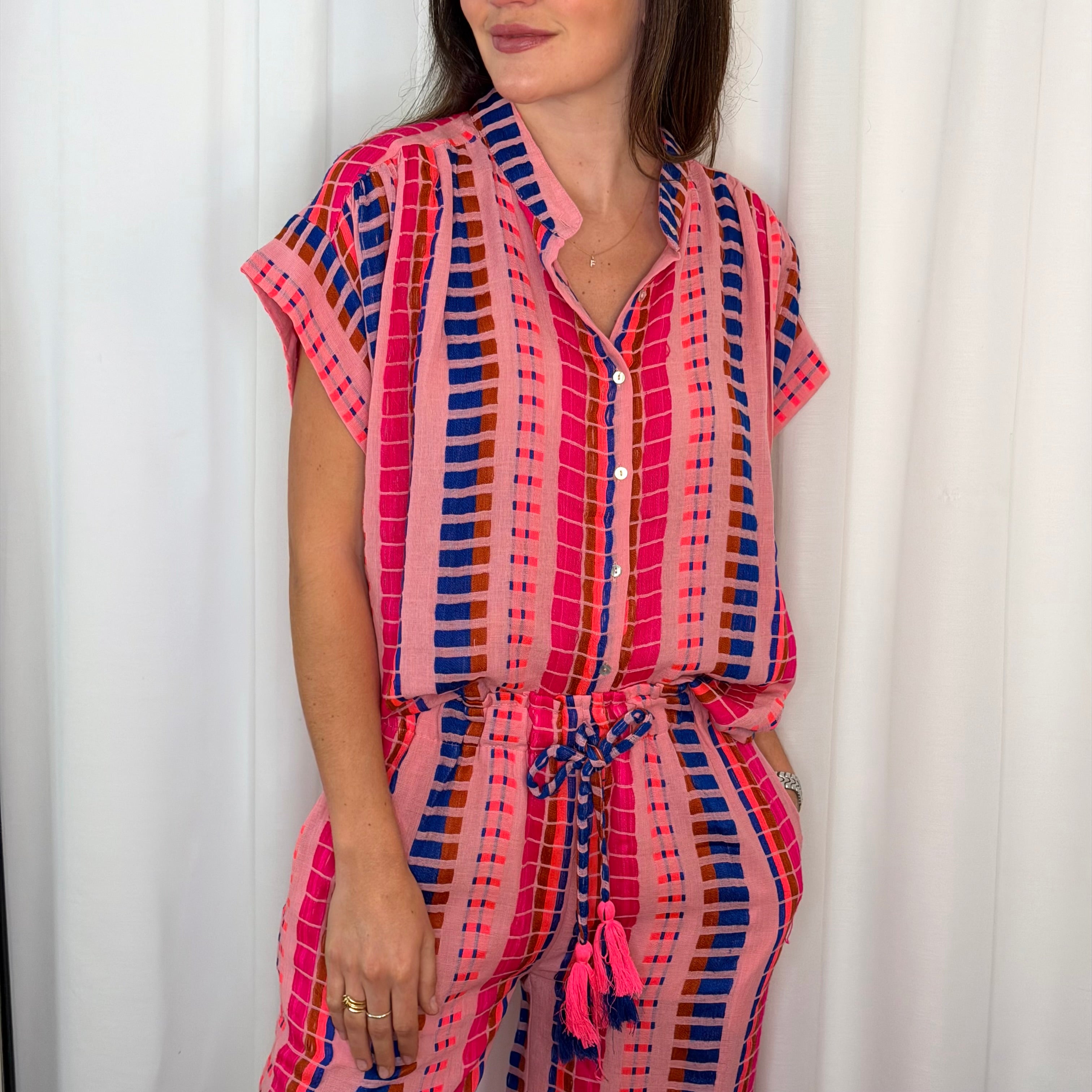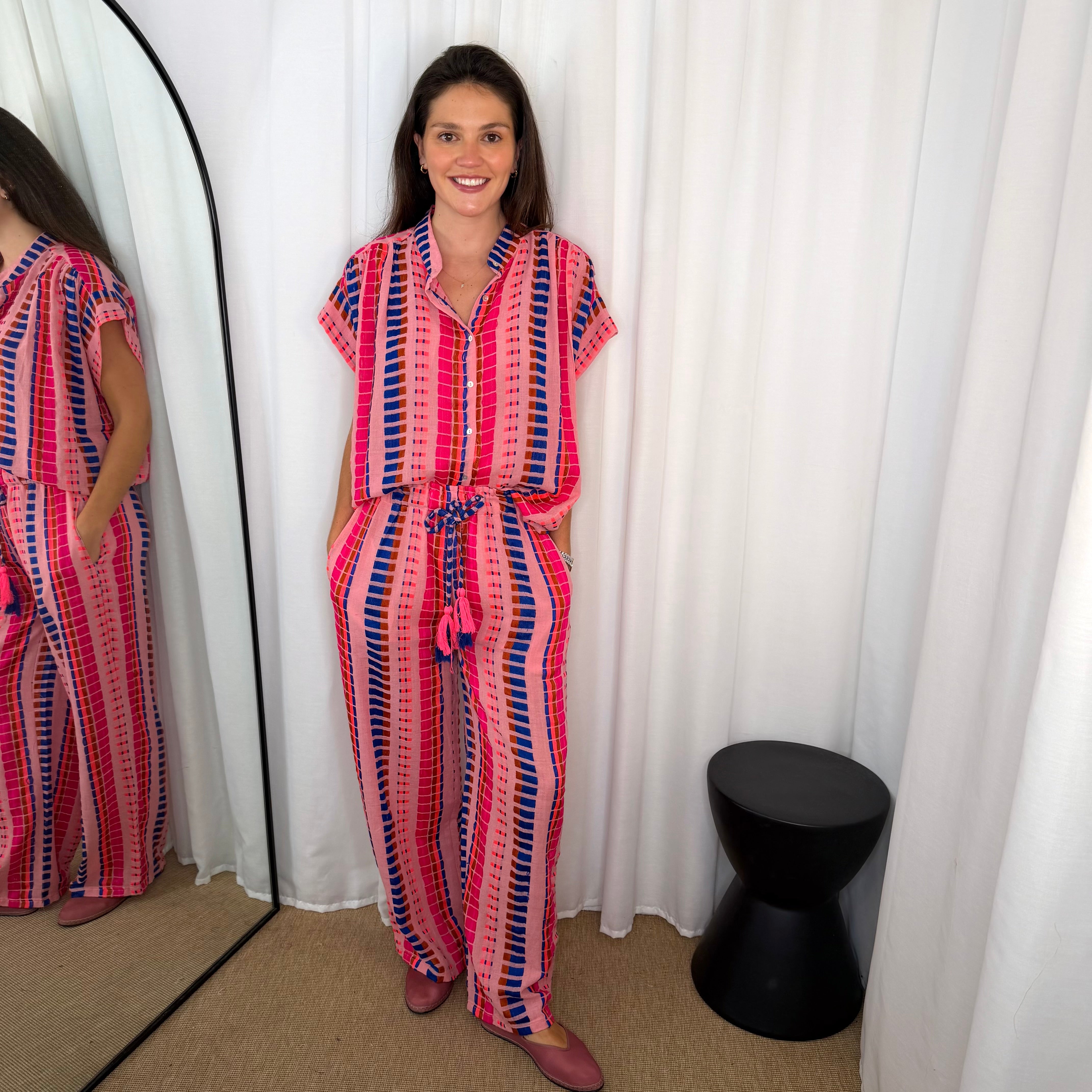 CONJUNTO TÚNICA E CALÇAS ÉTNICO ROSA