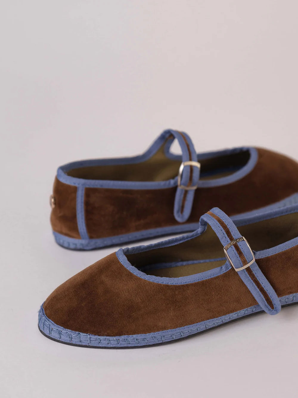 Sabrinas em veludo. Ajusta na fivela. Aperta com mola. Sola maleável. Feito à mão.