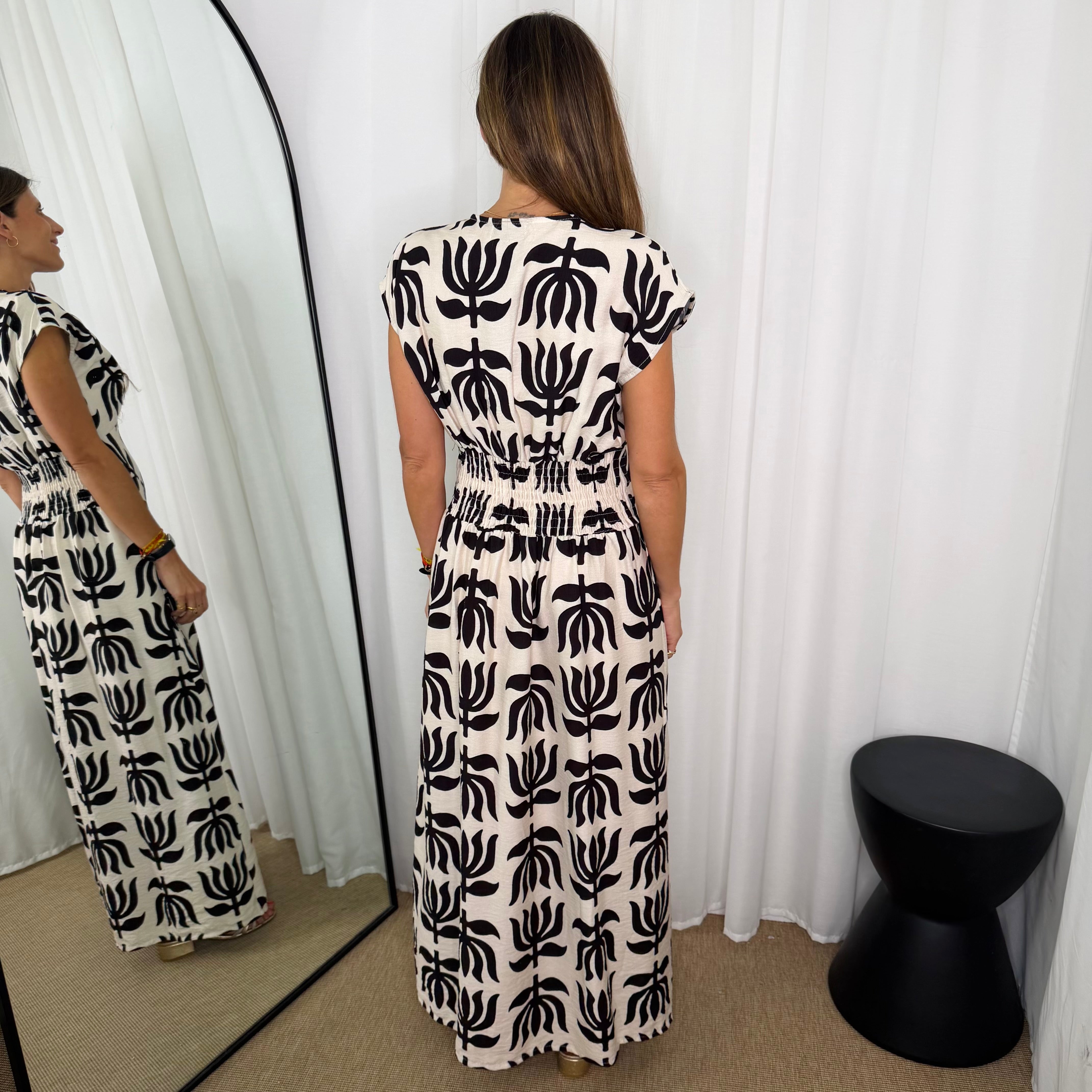 VESTIDO ESTAMPADO PRETO E BRANCO