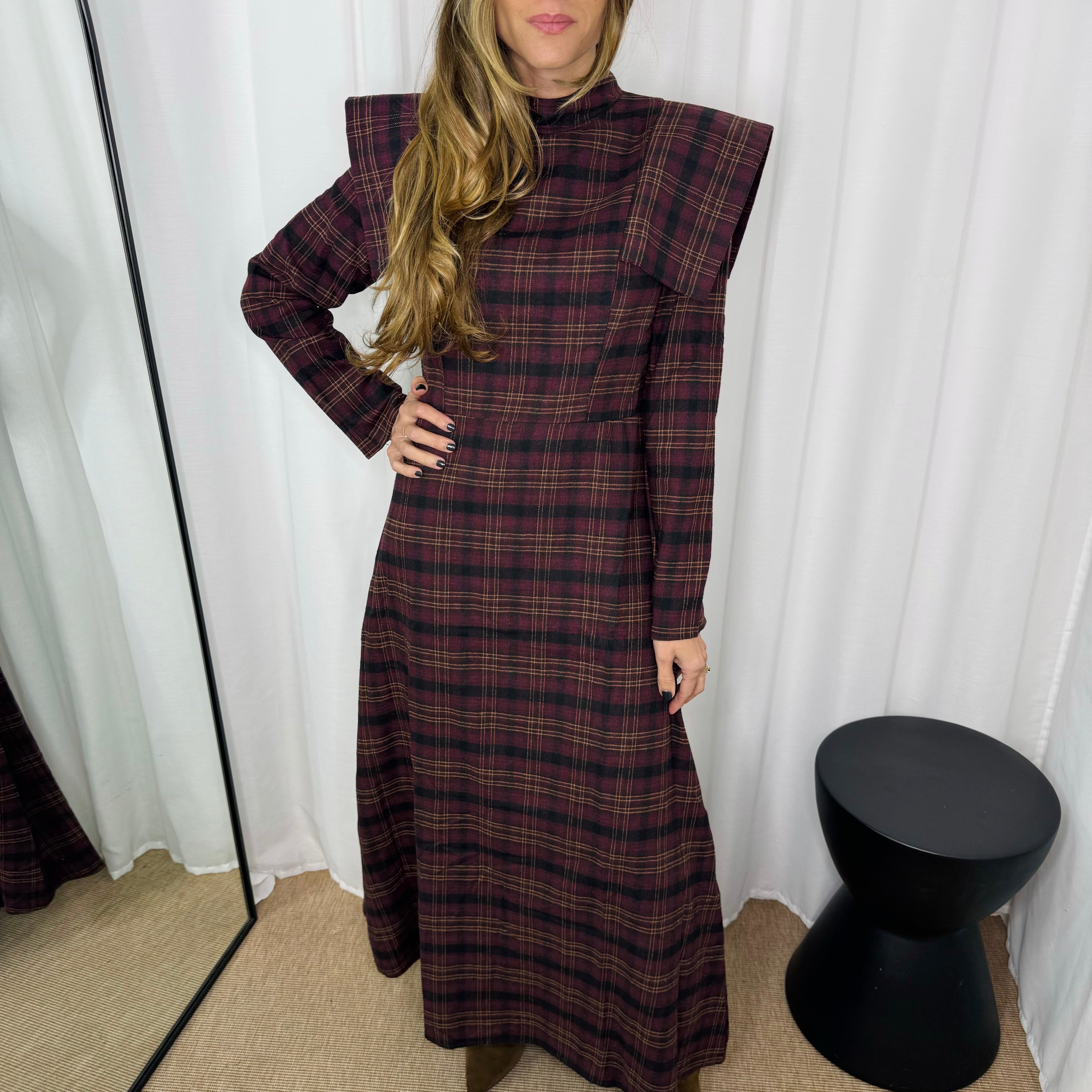 VESTIDO FAZENDA ESCOCÊS BORDEAUX